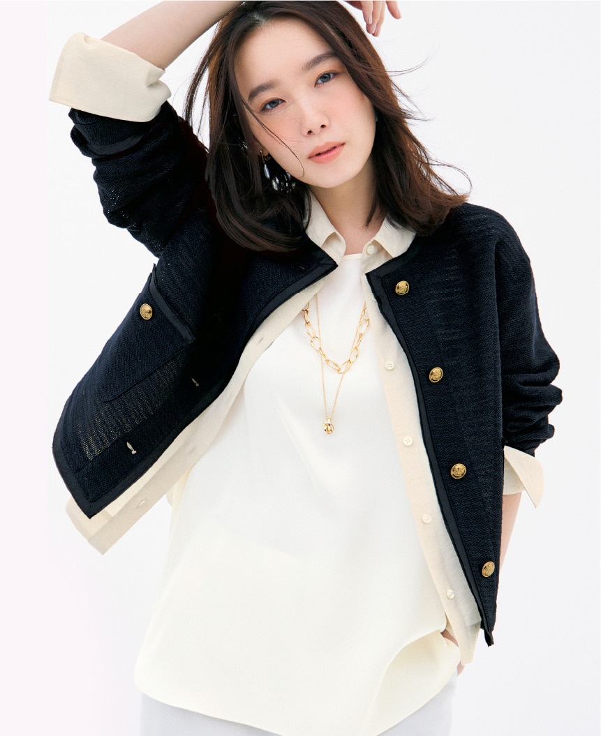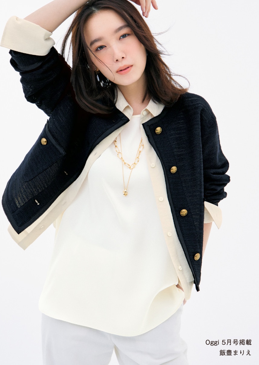 「すっきりと重ね着できる余裕があるのに、きれいめ見えするコンパクトなサイジングが絶妙!ワイドボトムとも相性がよく、働く女性の今のおしゃれに寄り添う一着だなと感じます(渡辺さん)」