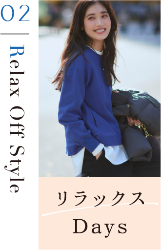 着心地が抜群のスウェットは、アクティブに過ごす休日コーデにピッタリ。自分も周りの人の目も引くロイヤルブルーを選べば気分も鮮やかに。白で繋ぐレイヤード使いがポイントに。