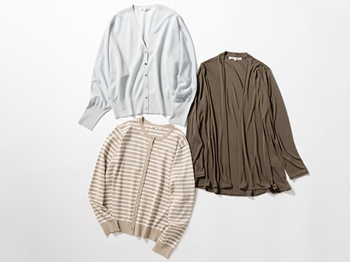 オフィスで何かと活躍するカーディガン。温度調整で重宝するのはもちろん、一枚羽織ってオフィスコーデのアクセントにしたり、逆に少しカジュアルなスタイルの上に一枚羽織ってきれいめにまとめ上げたり。23区おすすめのカーディガンからお気に入りを見つけて。