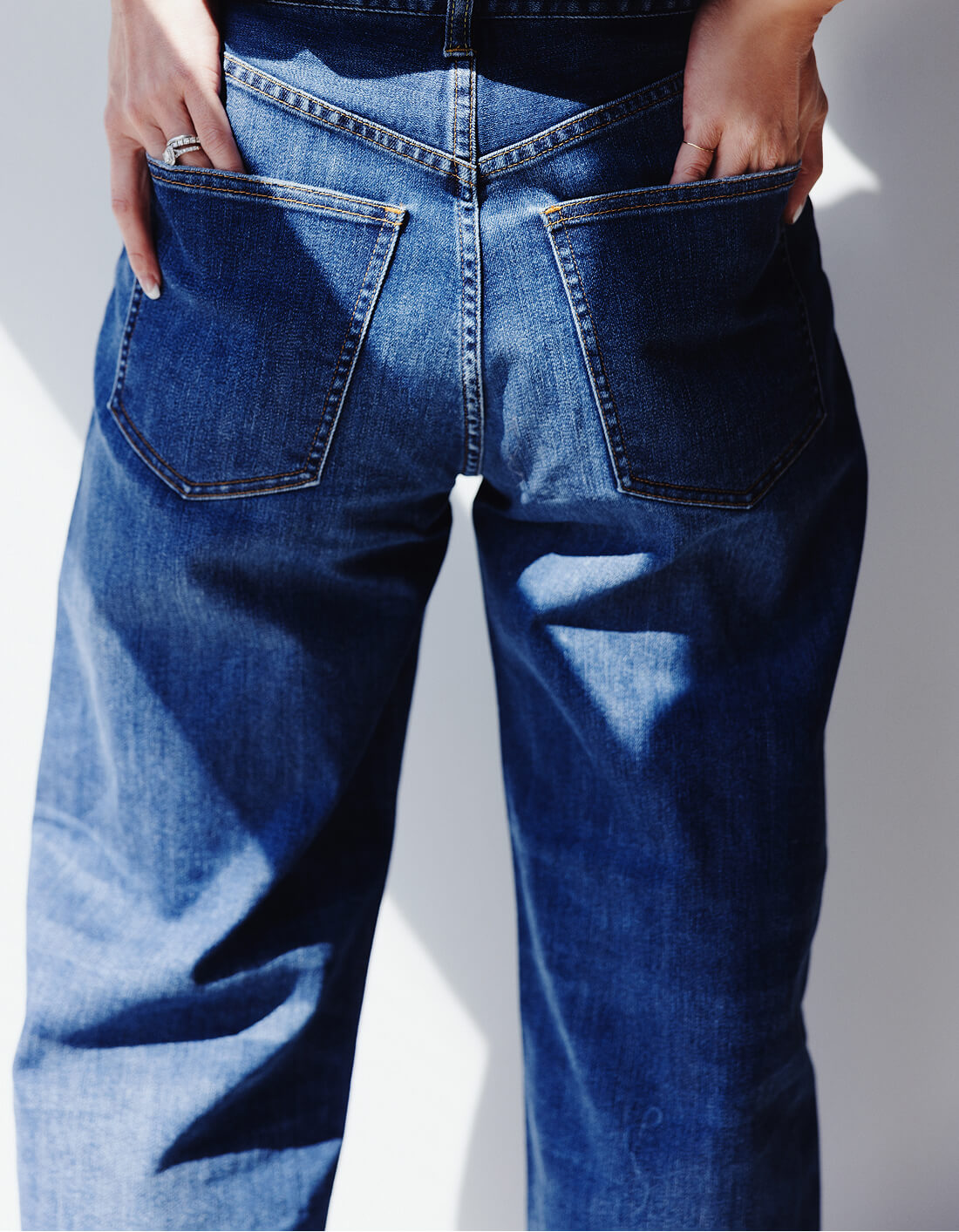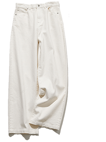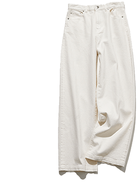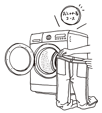 デニムを洗濯機で洗う場合は、他の衣類と一緒にせず単体で。同じデニムでも色移りや生地同士の擦れを防ぐために、まとめて洗うことは避けたほうがベターです。おすすめは洗濯時間が比較的に短い“ドライコース”や“おしゃれ着コース”。色落ちを抑えるために、裏返しておくこと、型崩れを防ぐためにボタンなどは留めておくことも大事なポイント。