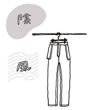 日焼けや色落ちからデニムを守るためには裏返して干します。さらに干す際は、直射日光が当たらない風通しがいい場所での陰干しがベスト。室内干しでも問題ありません。