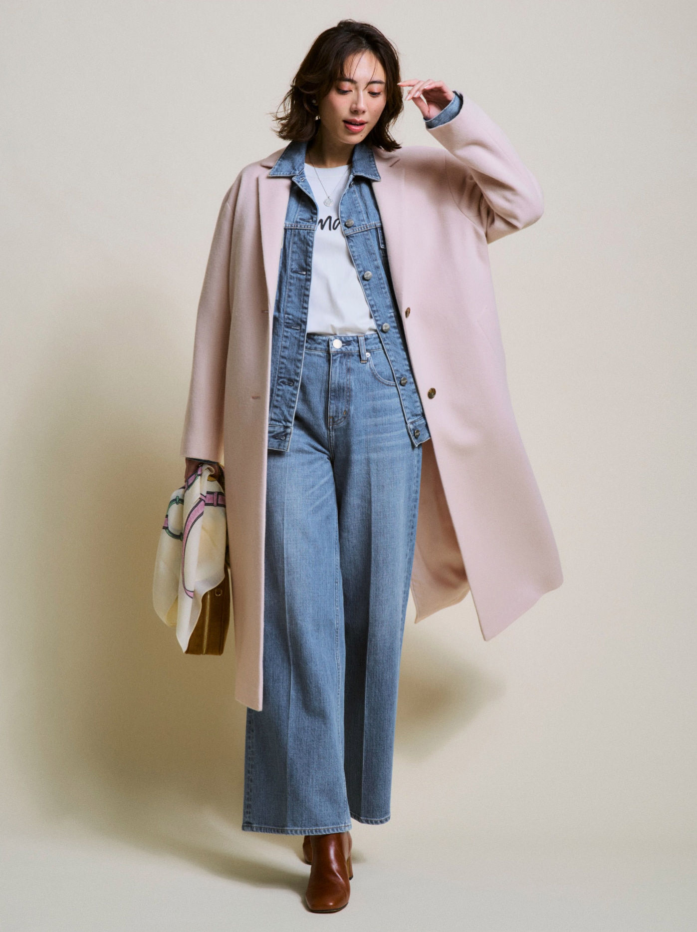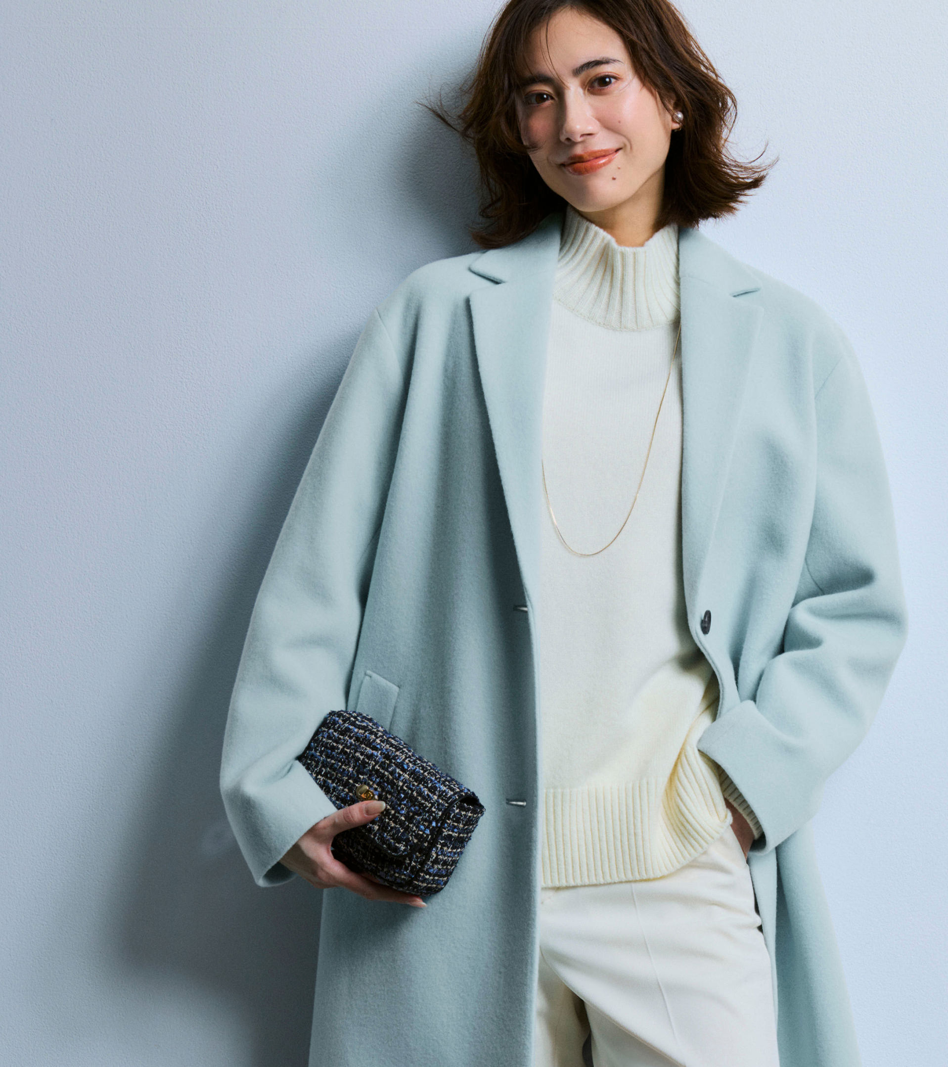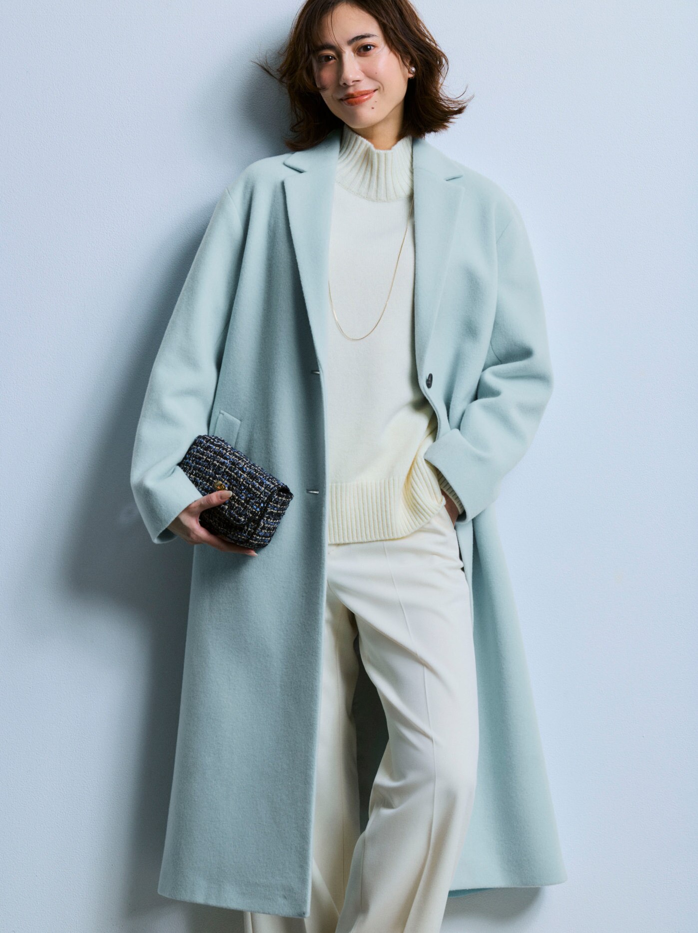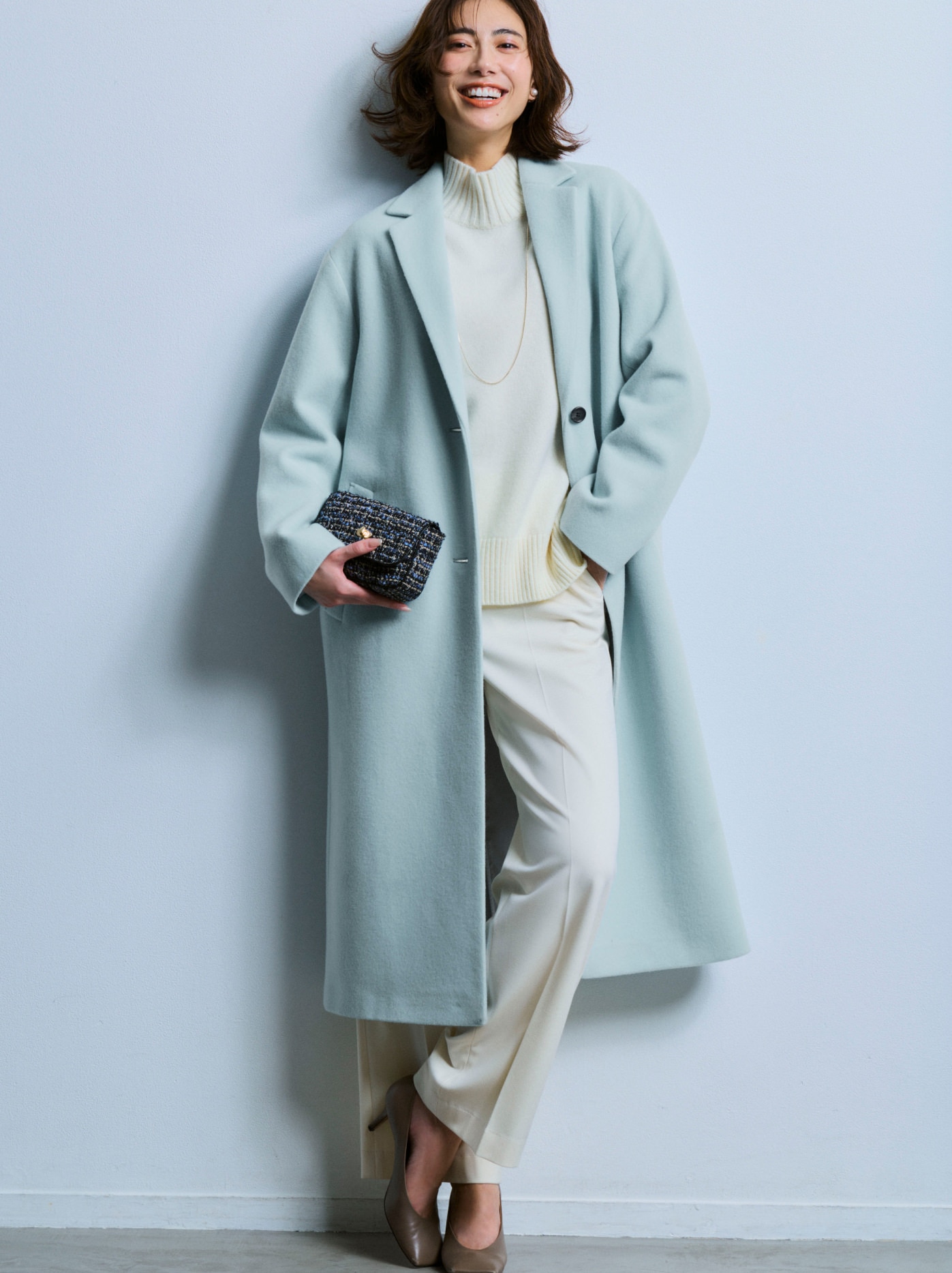パステルカラーが冬の装いに華やぎを添え、