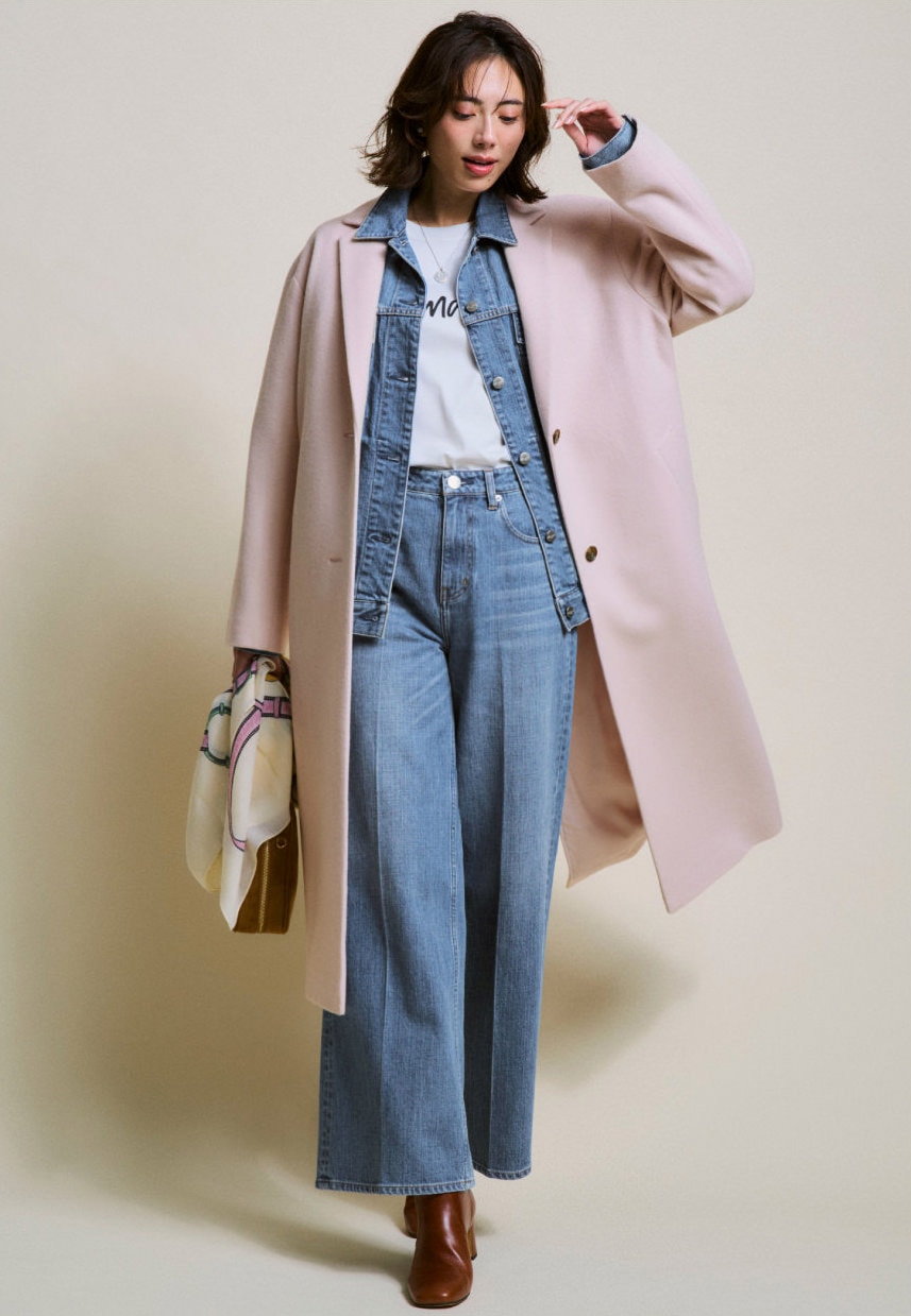 華やぎカラーのチェスターコートと