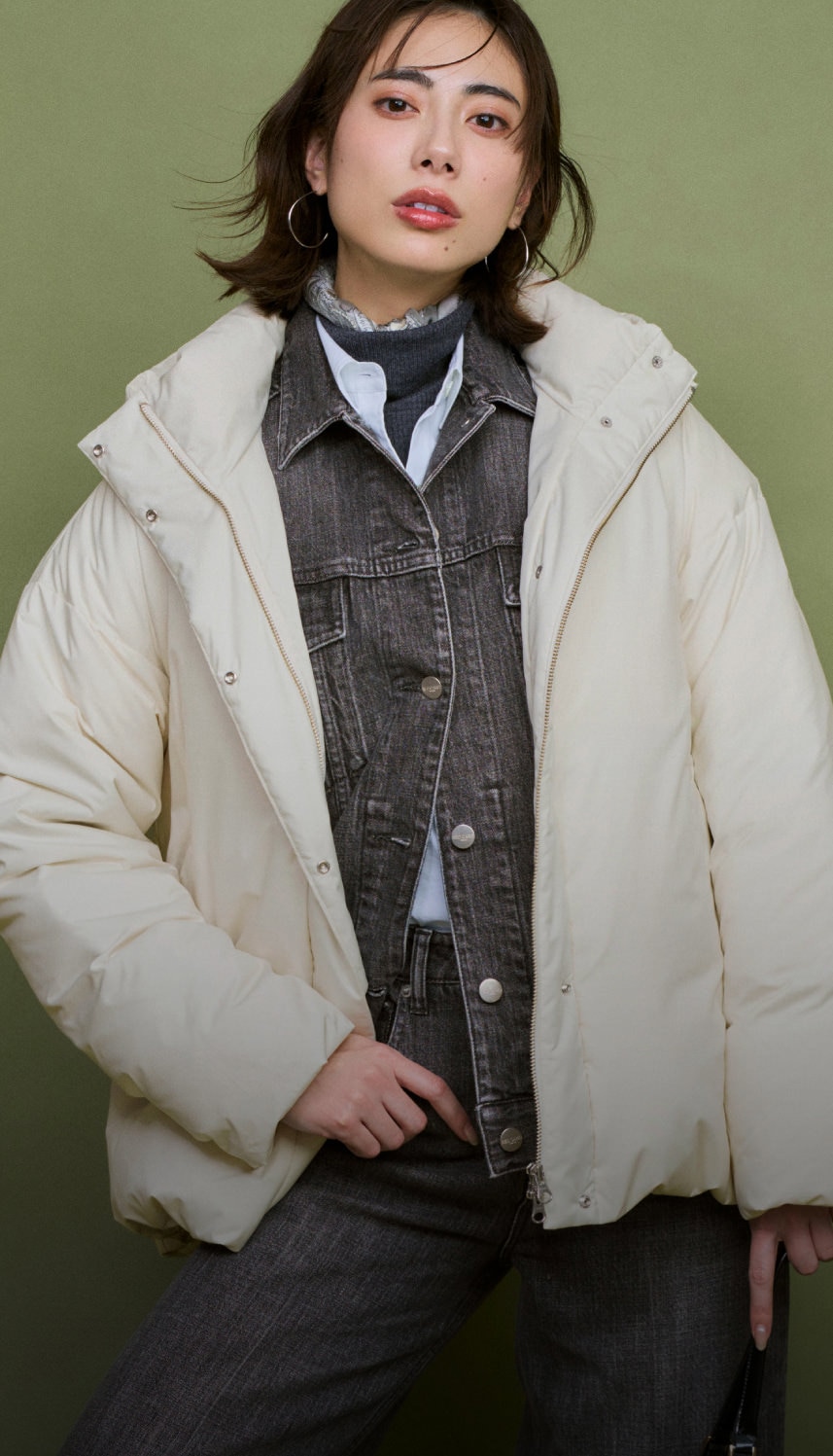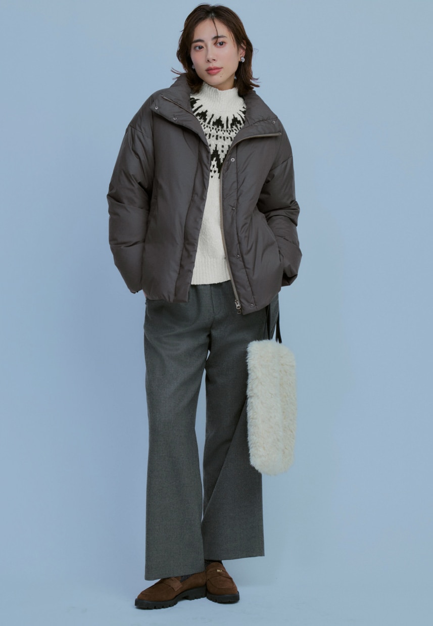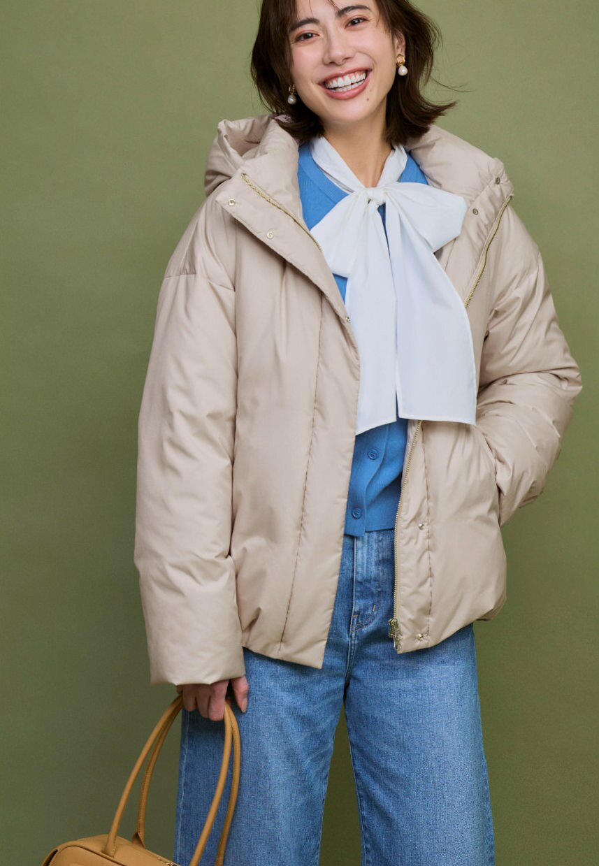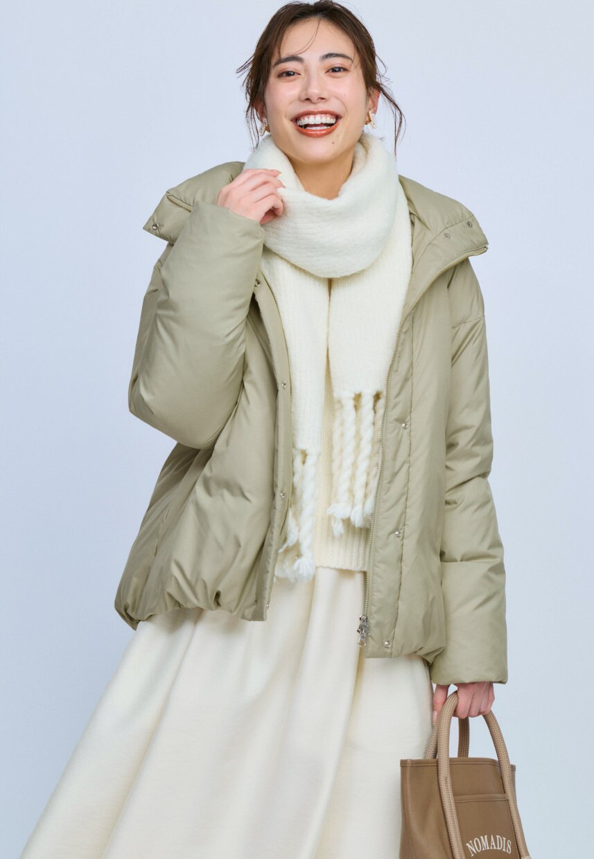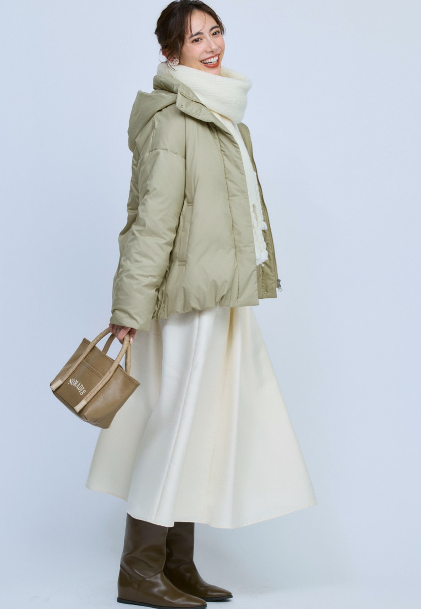 裾を絞って丸みを出すことで、ダウンなのに女性らしい柔らかい雰囲気をもたらしてくれる。