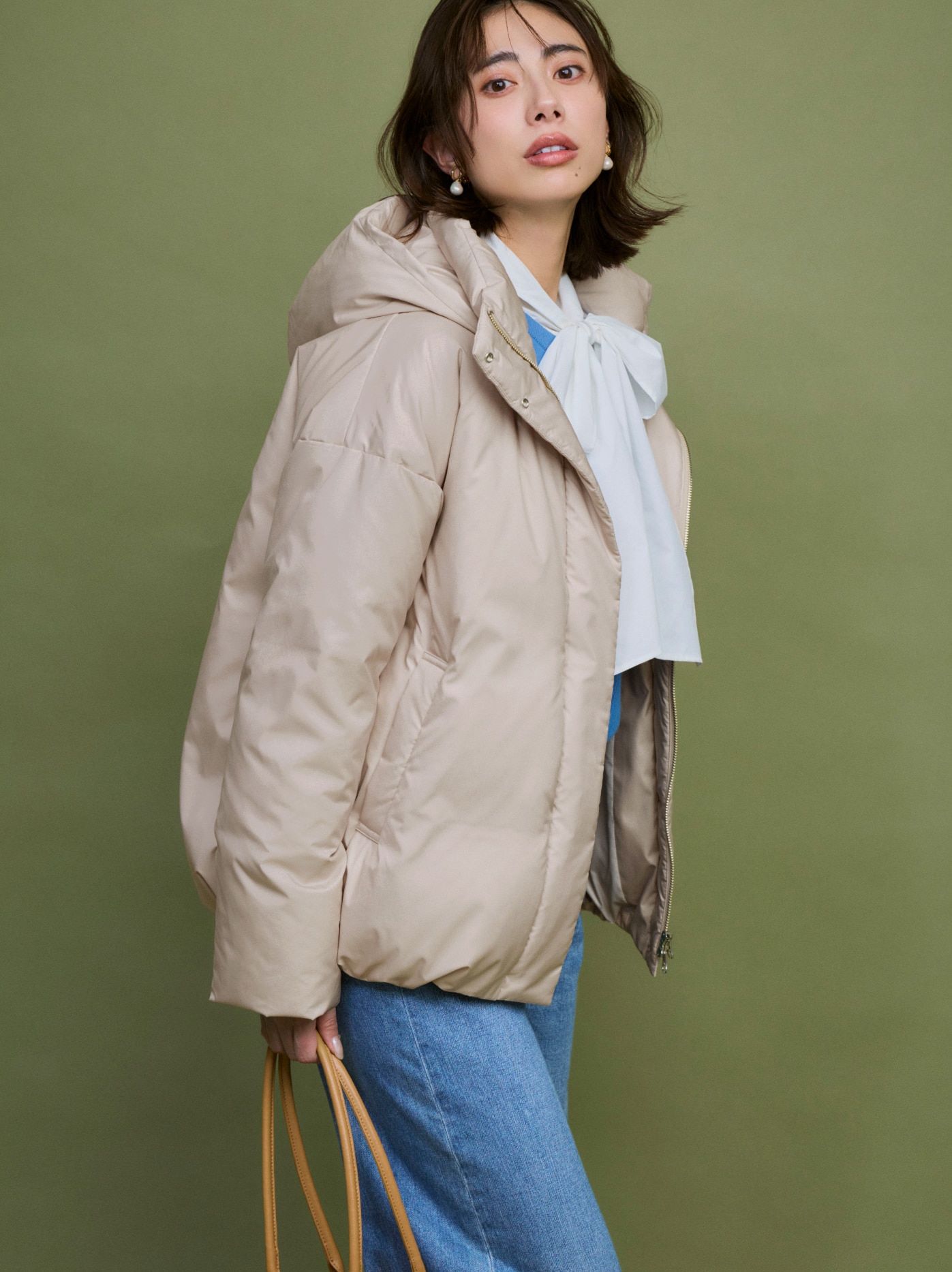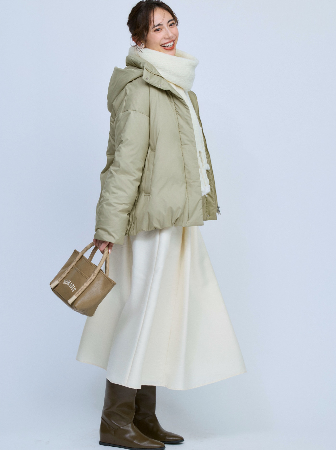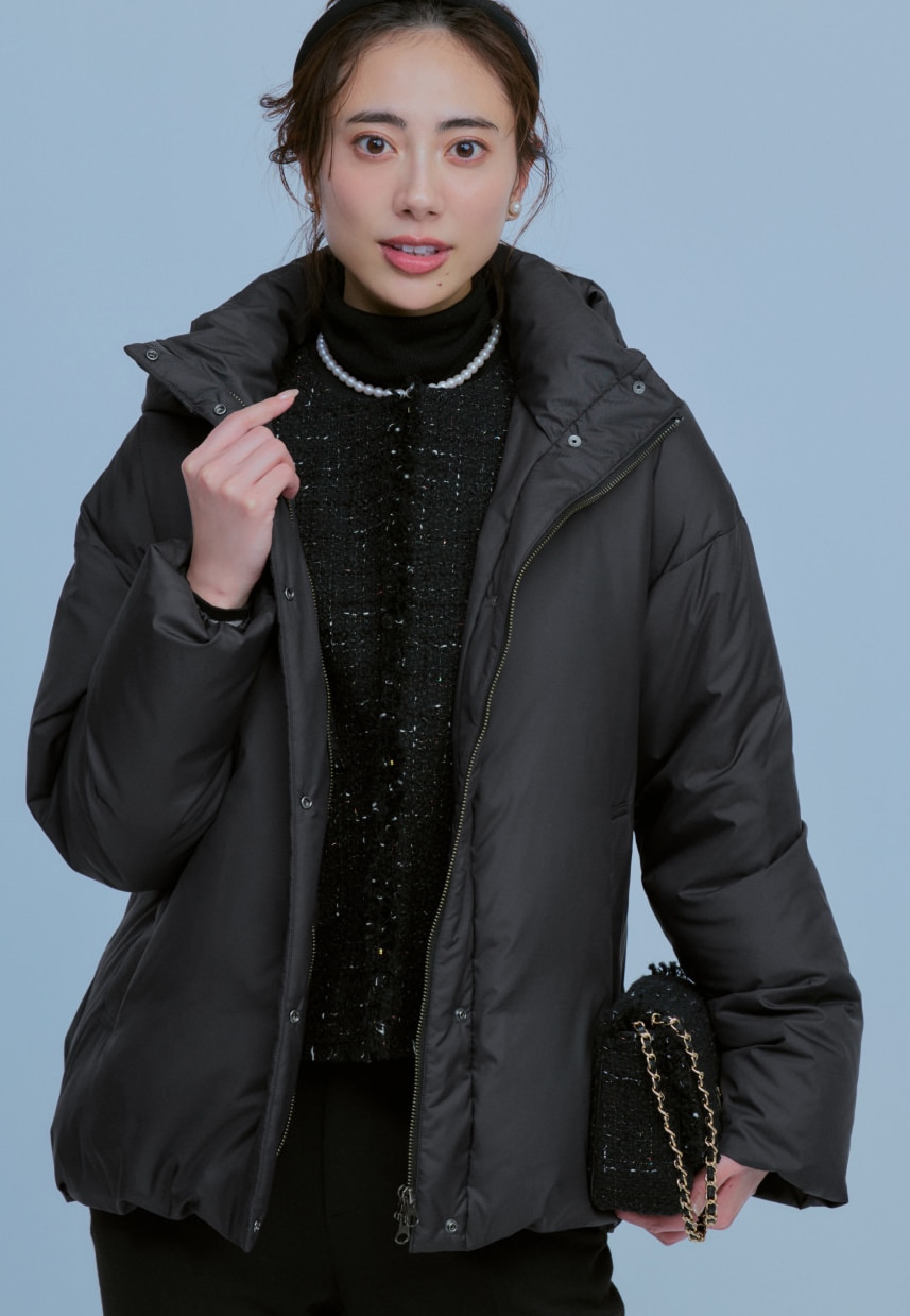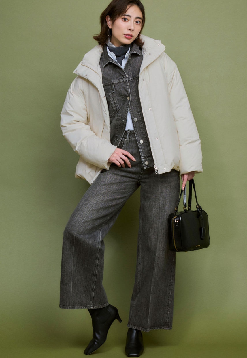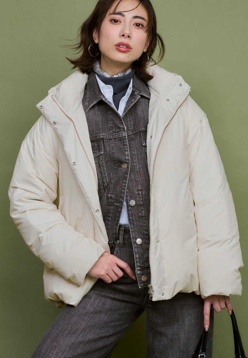 裾を絞って丸みを出すことで、ダウンなのに女性らしい柔らかい雰囲気をもたらしてくれる。