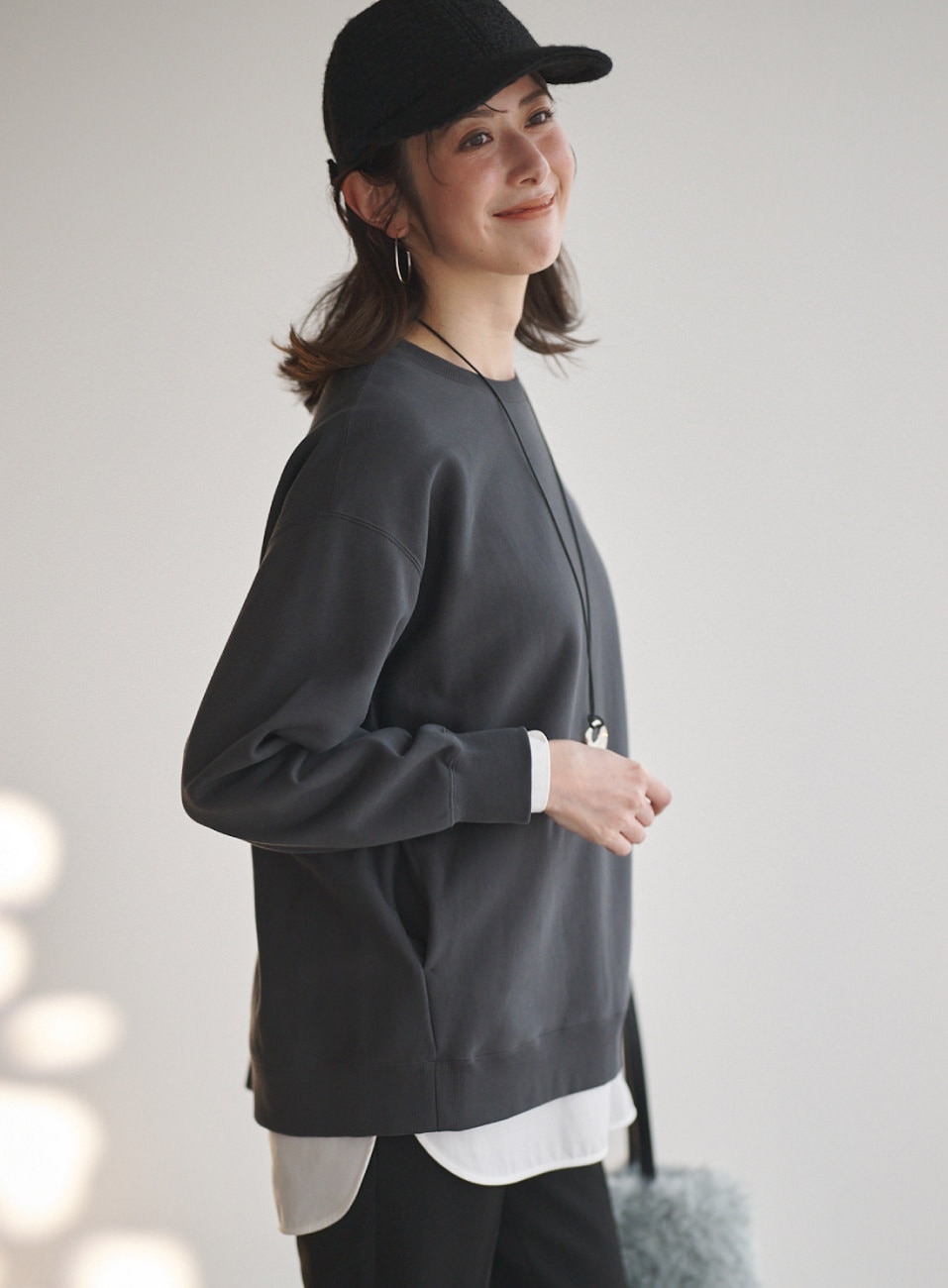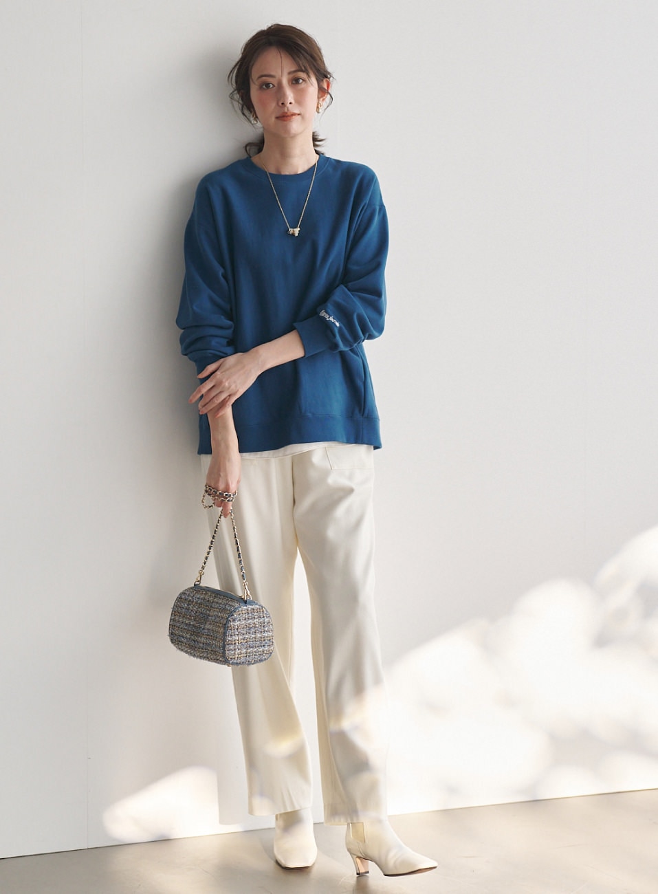 とろけるような色合いと着心地が魅力の23区のカラースウェット。