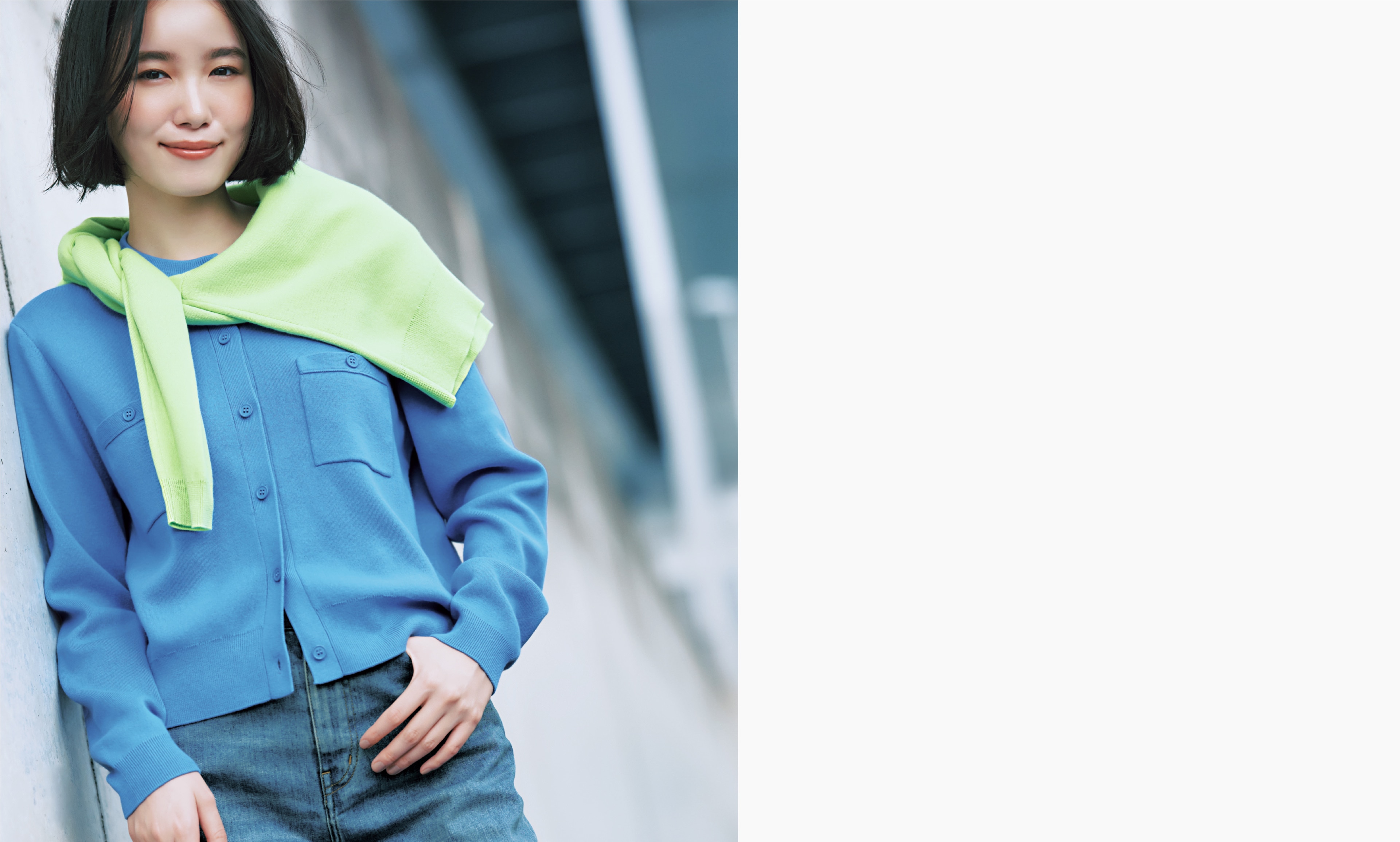 〝コットンカシミヤ ニットカーディガン〟をご紹介します。モデル 飯豊まりえさんが軽やかに春の気分を盛り上げて纏います。
