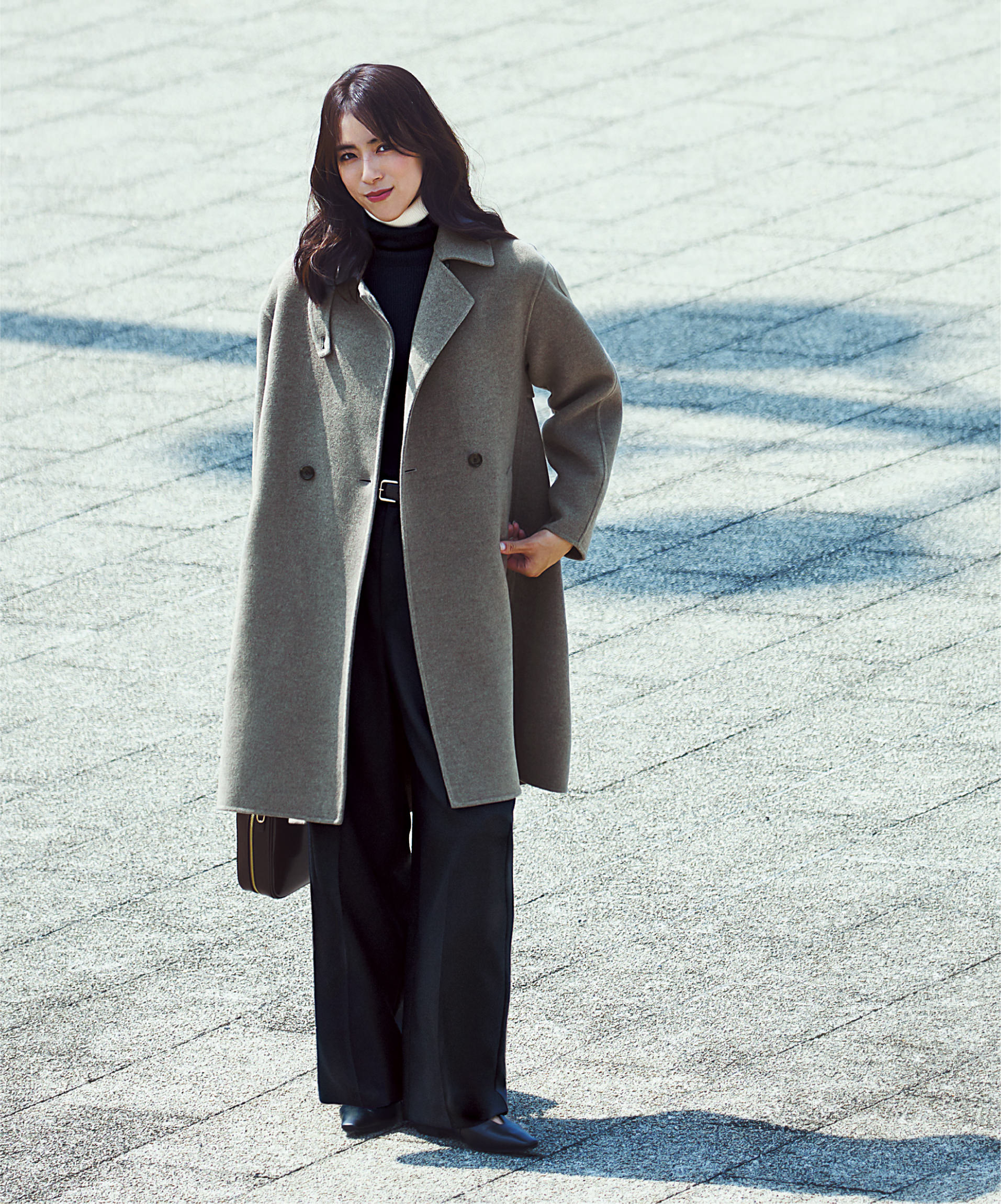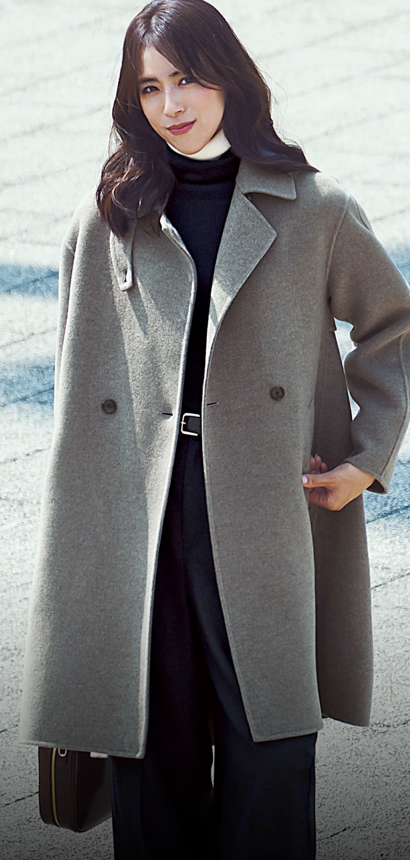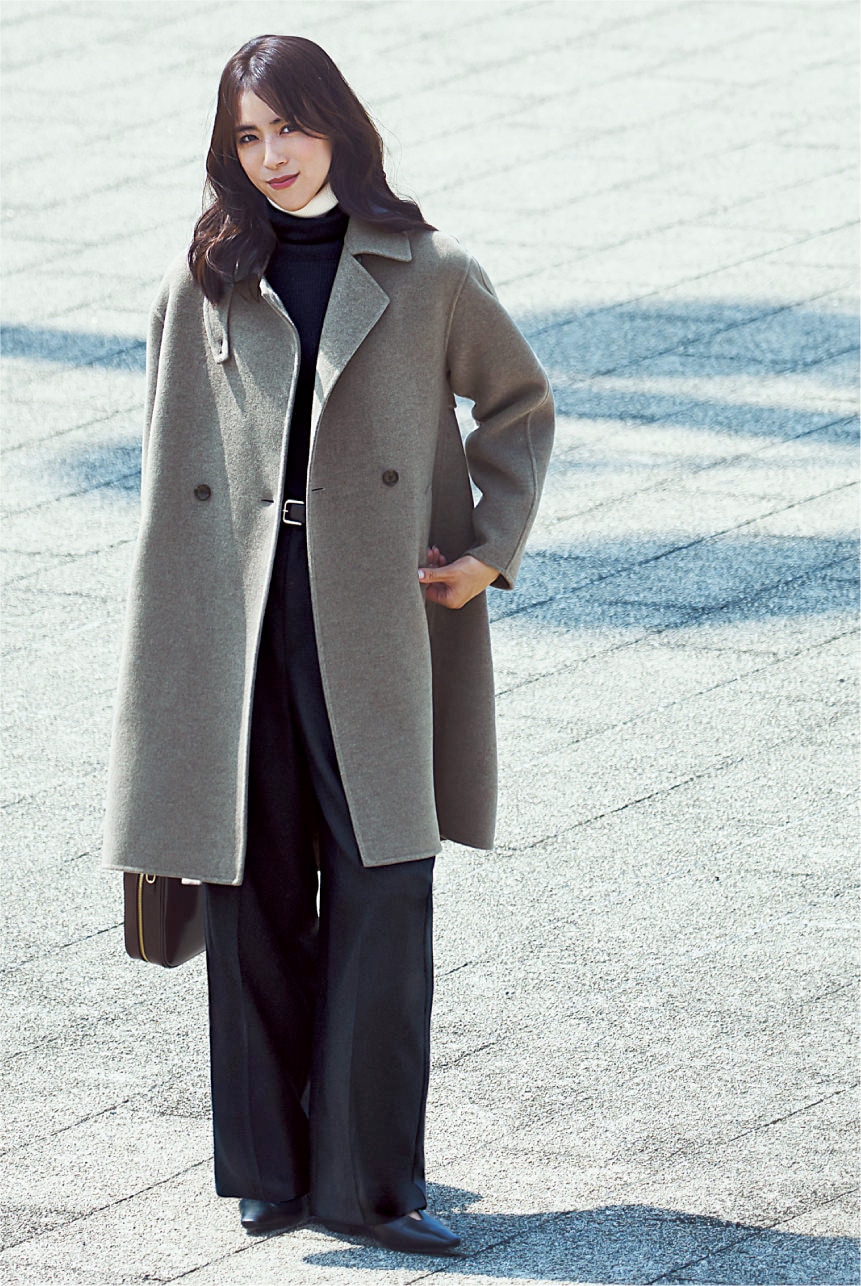 きれいめの日こそ、上品さもおしゃれさも出せるディテールを兼ね備えたウールコートが必要。欲しいのは絶妙な2枚の上質ウール生地を1枚に仕立てたリバーコート。ボタンを開けて着流しても素敵に見えるから冬の入りから活躍してくれる。VERY11月号ベストアウター大賞でもロングアウター賞を受賞した逸品!