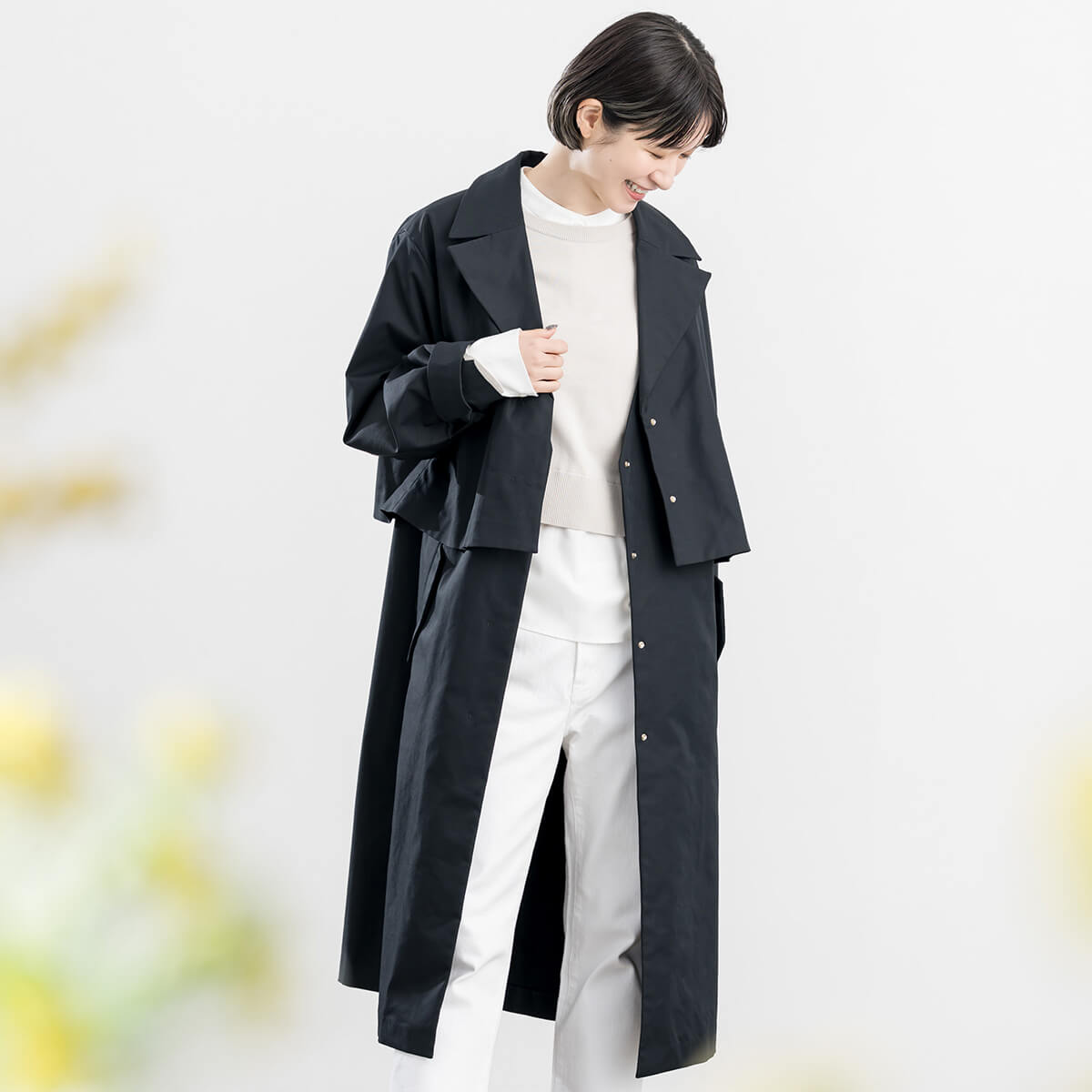 4Wayで楽しめる、着回し自在の優秀トレンチ。その日の気分やシーンに合わせて、自分らしい着こなしを。