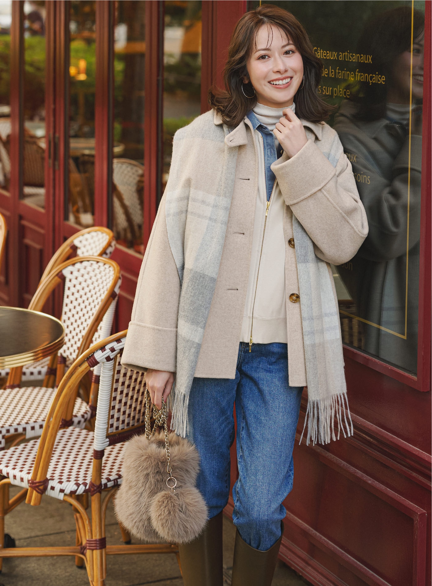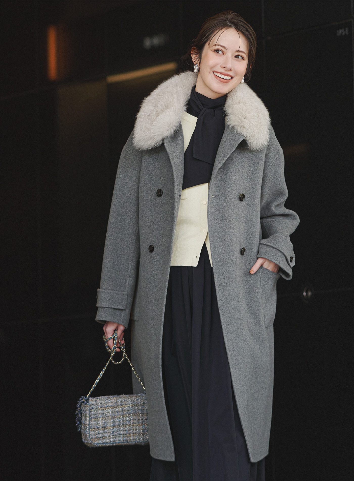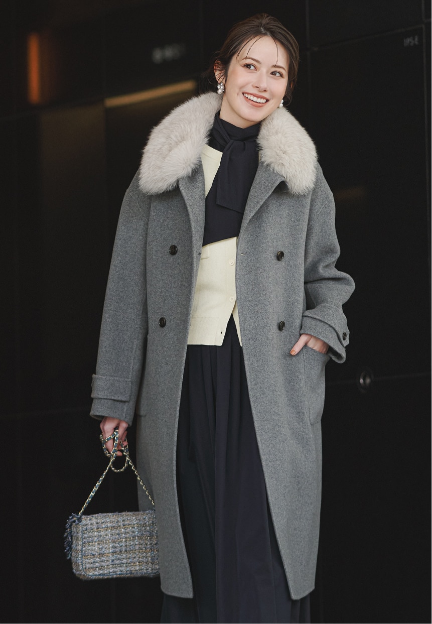 冬の装いにさりげない華やぎをプラス。