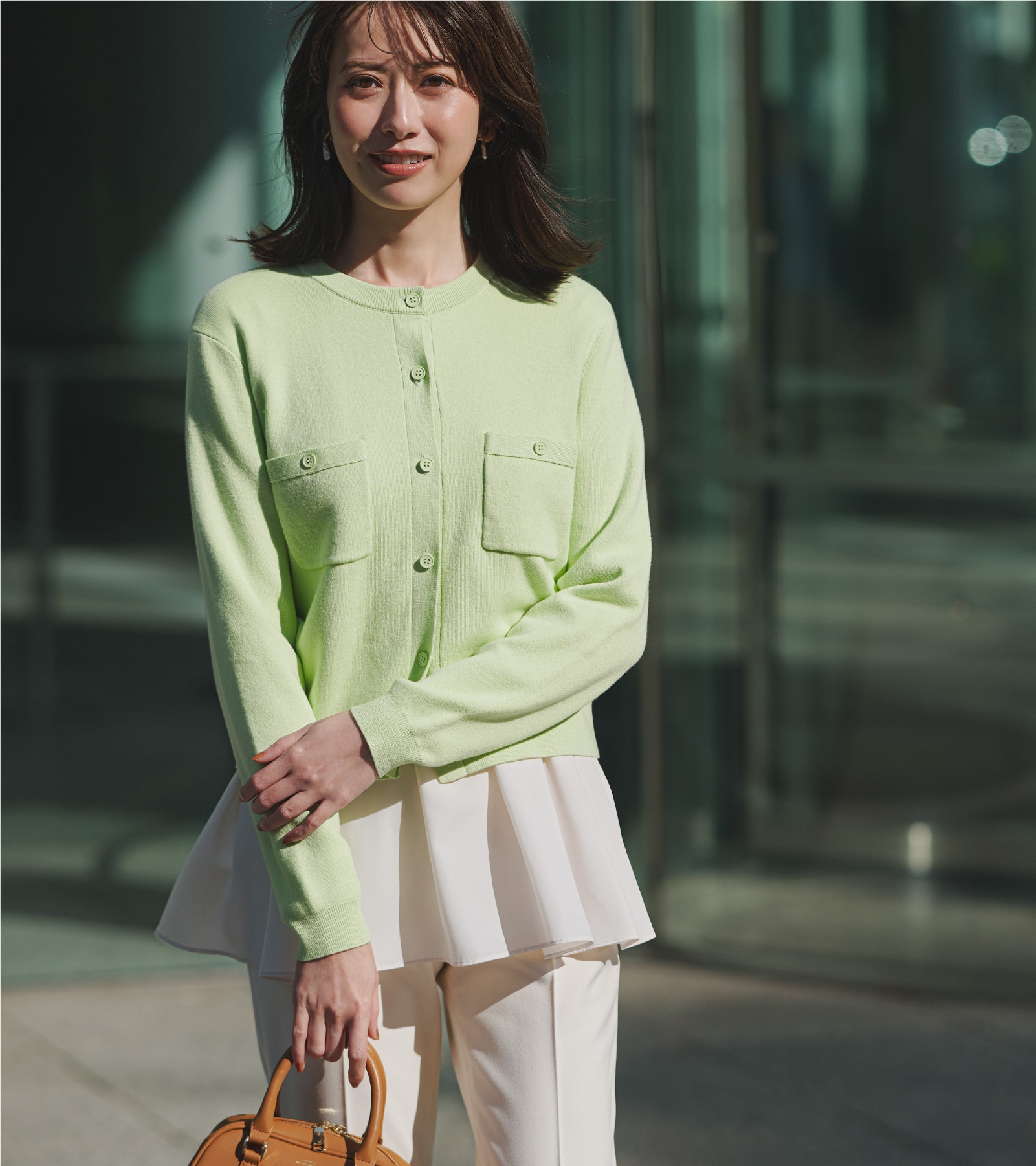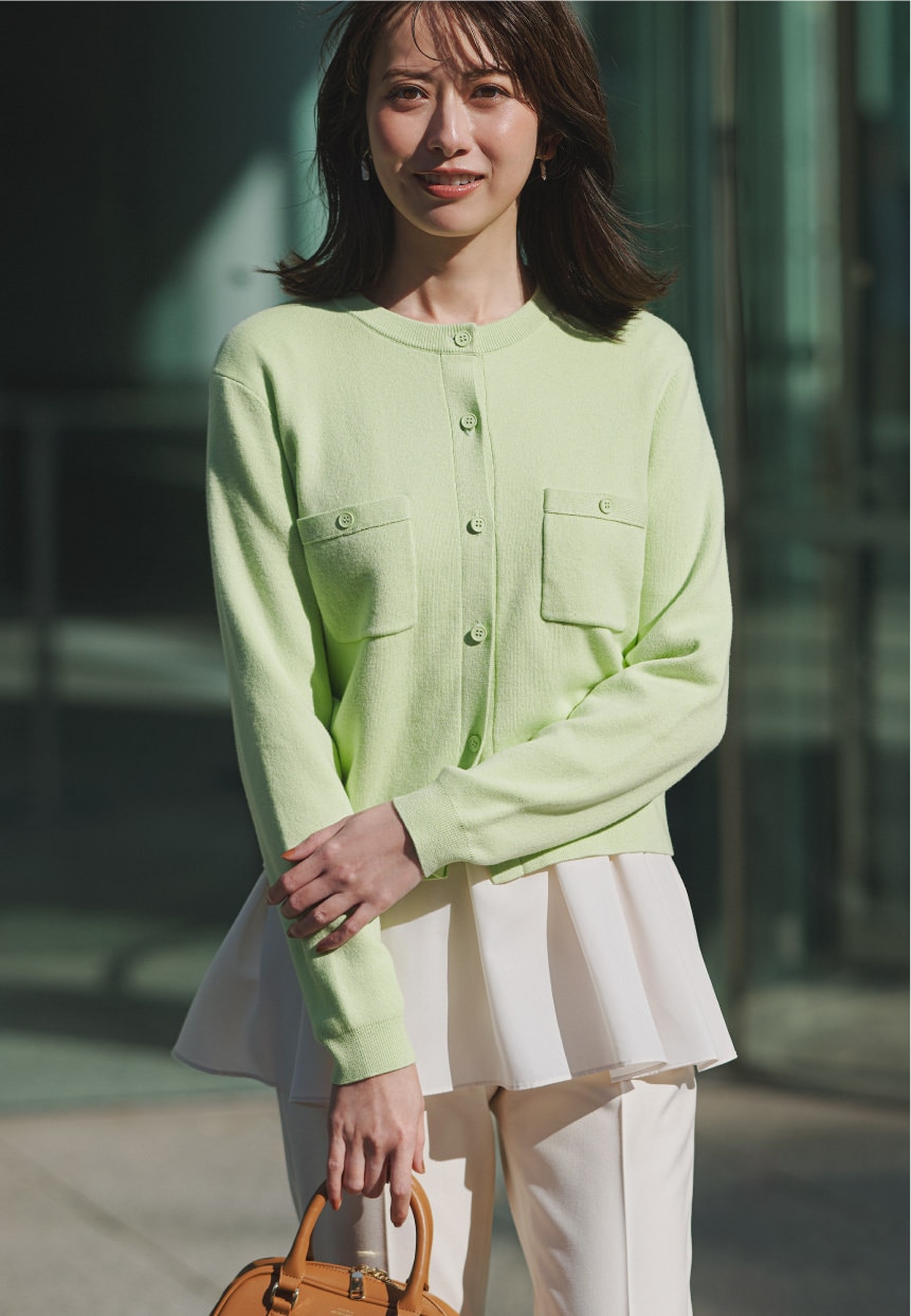 柔らかなエクリュカラーのカーディガンは、
