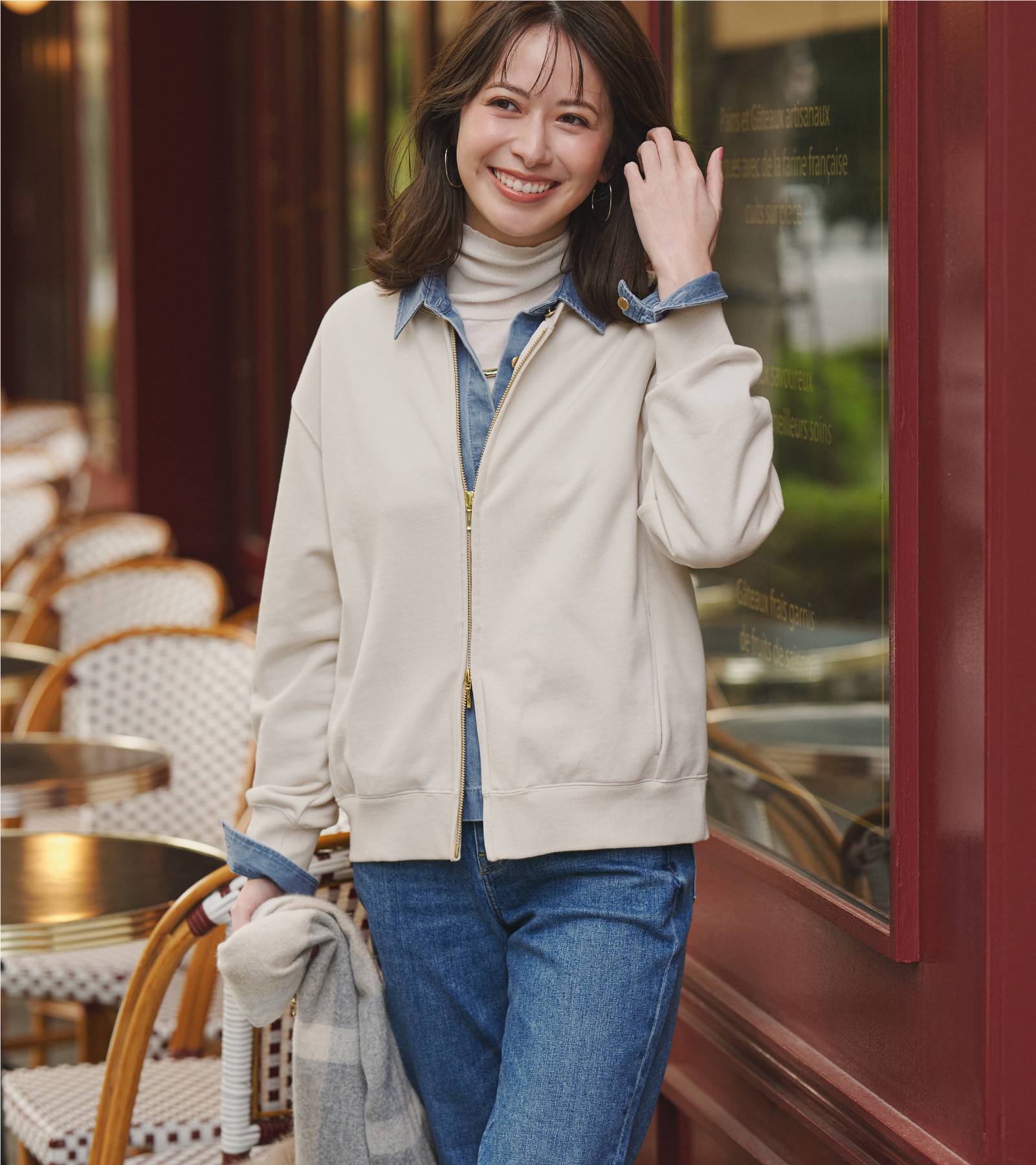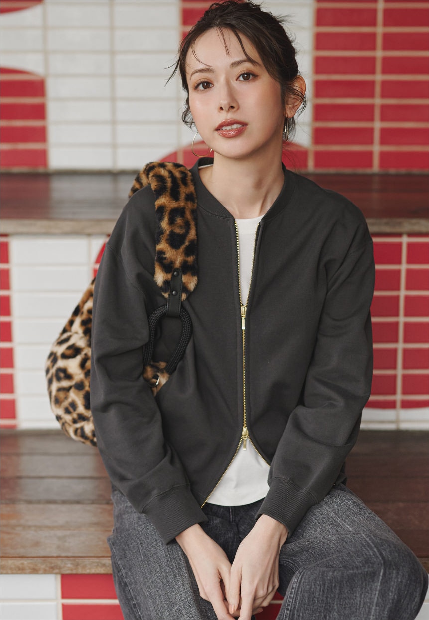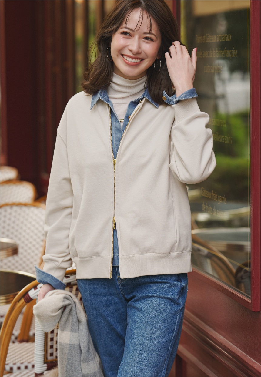 程よくきれいめに着られるジップアップスウェットは、