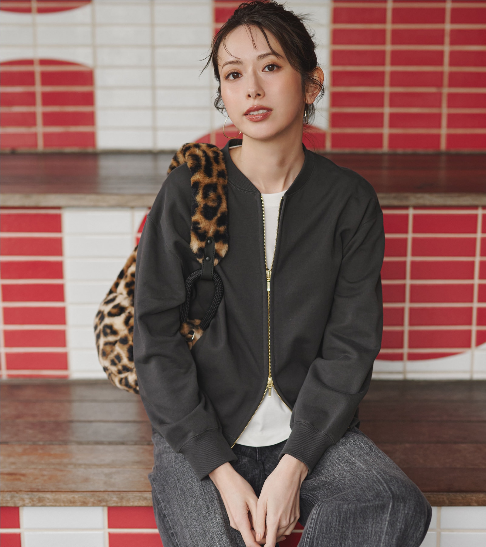 スウェットスタイルにきちんと感を添える。