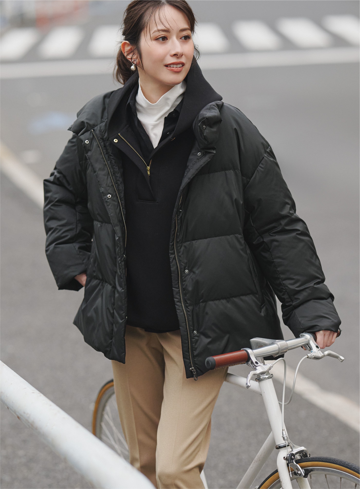 ダウンをさっと羽織って、