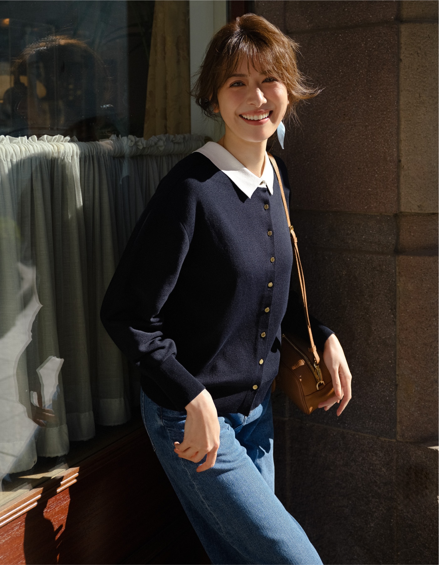 ボタンの開けを調整すれば、羽織りっぽくも見せれる。