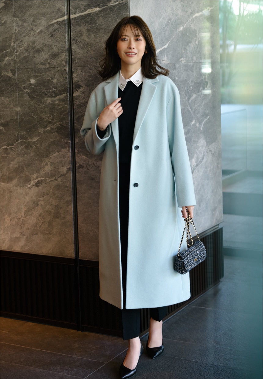 春先には淡いカラーコートを合わせて楽しんで。