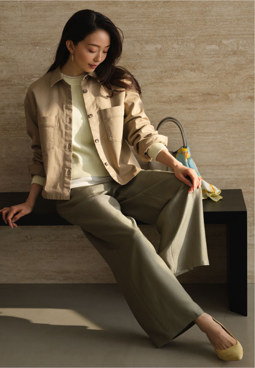 艶感ボトムスが、装いに春の光を呼び込む。