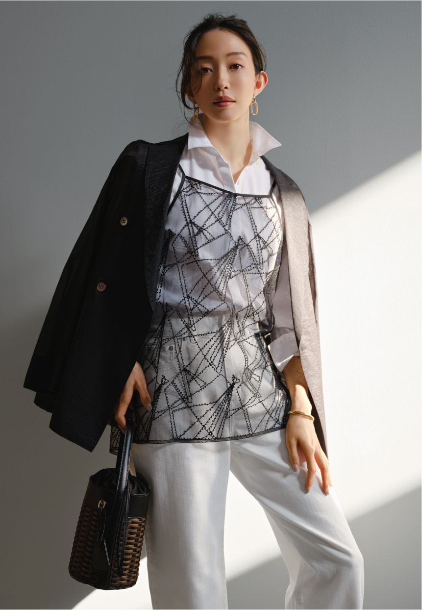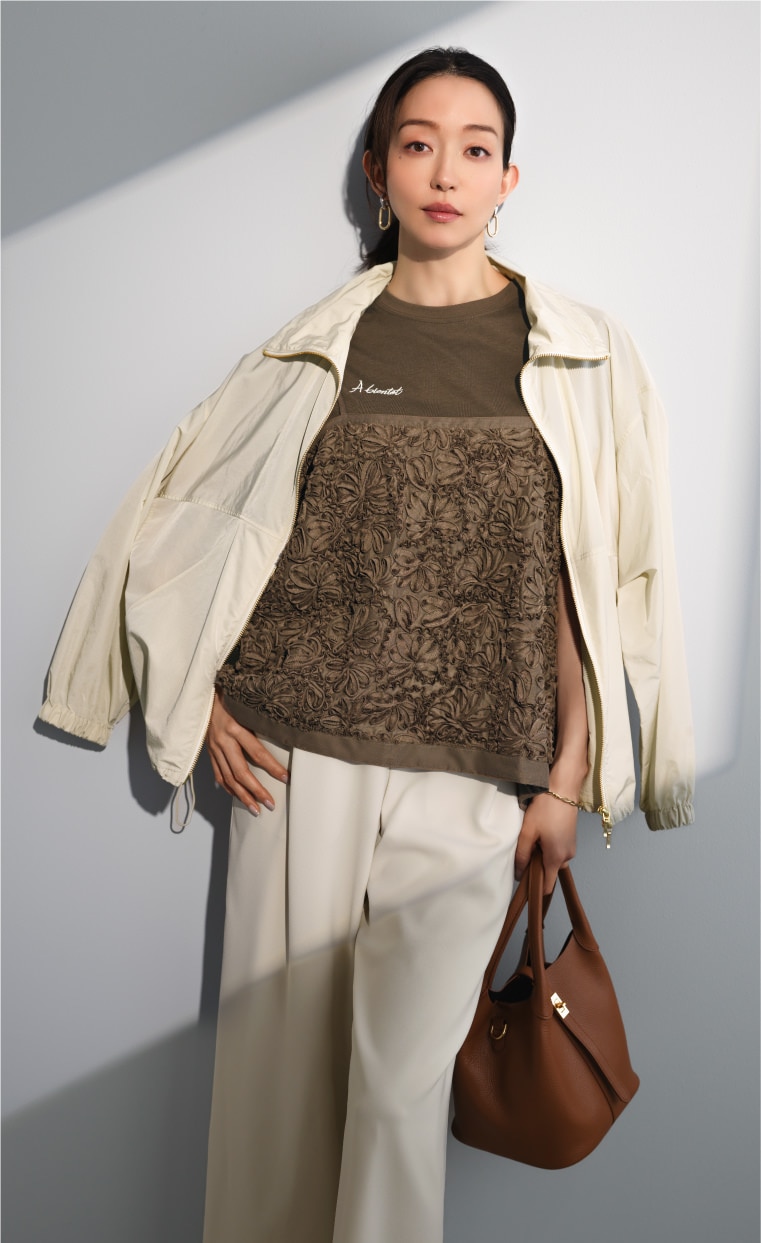 一枚で絵になる、静かな華やぎスタイル。