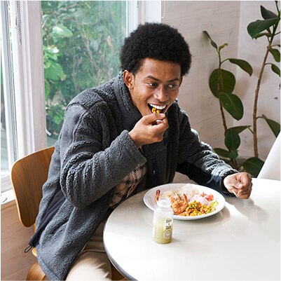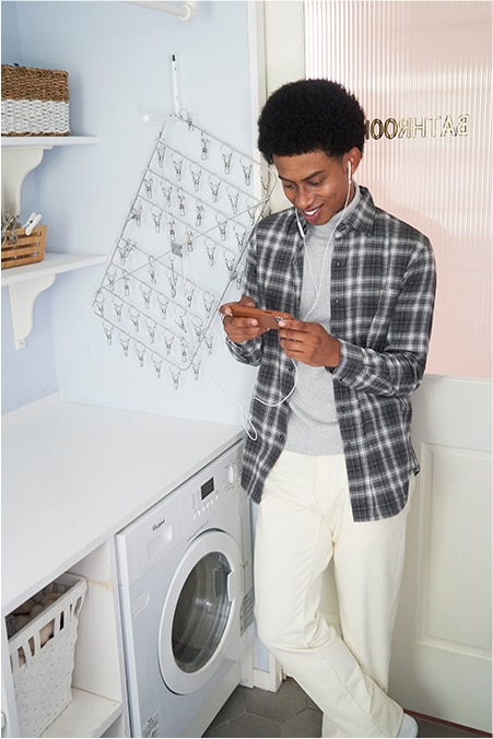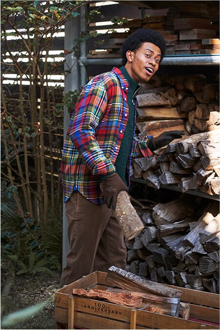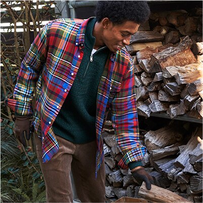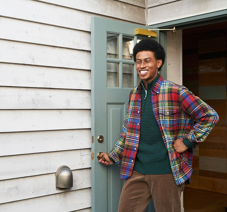 あったかニットとマルチカラーチェックシャツで気分を上げて。