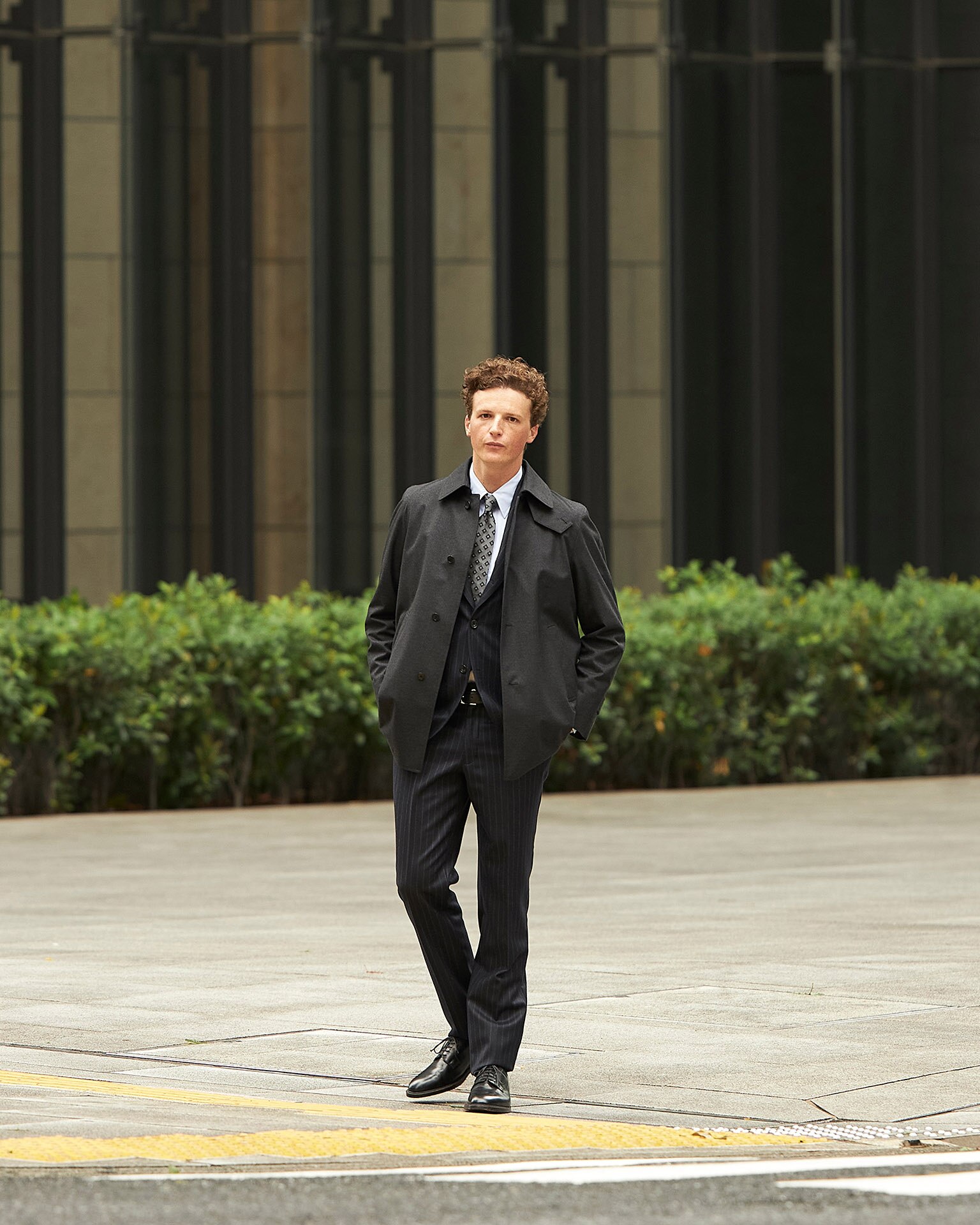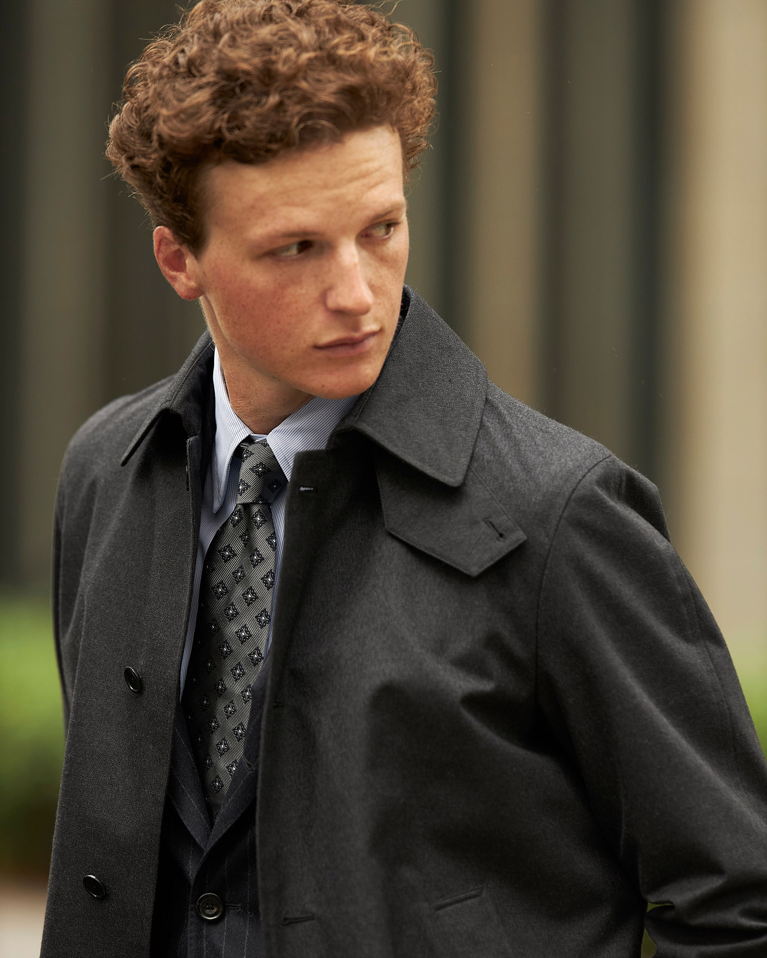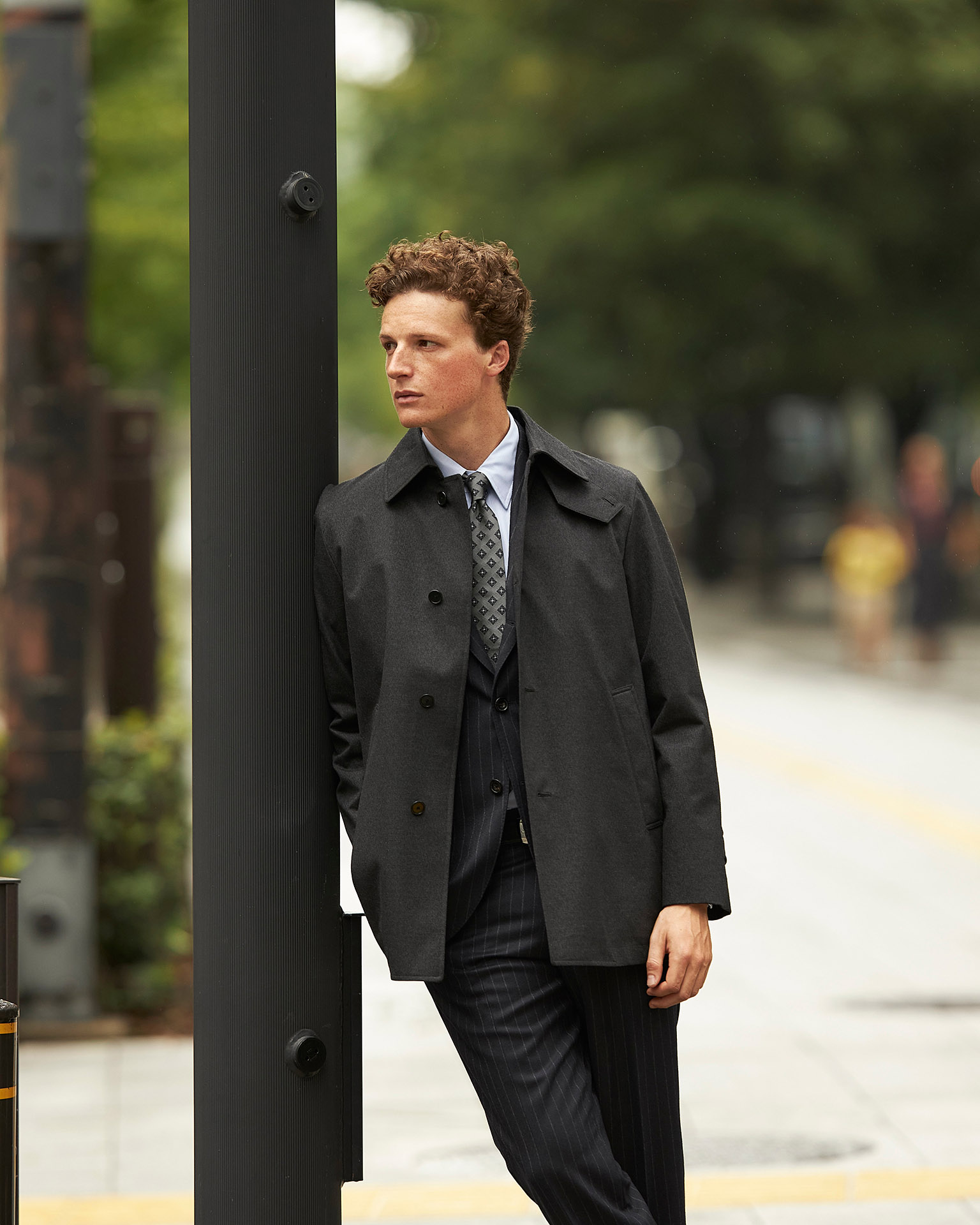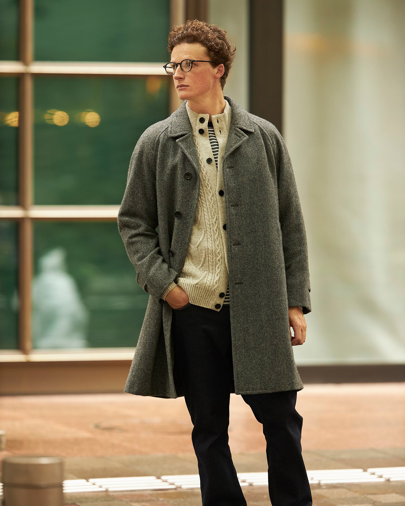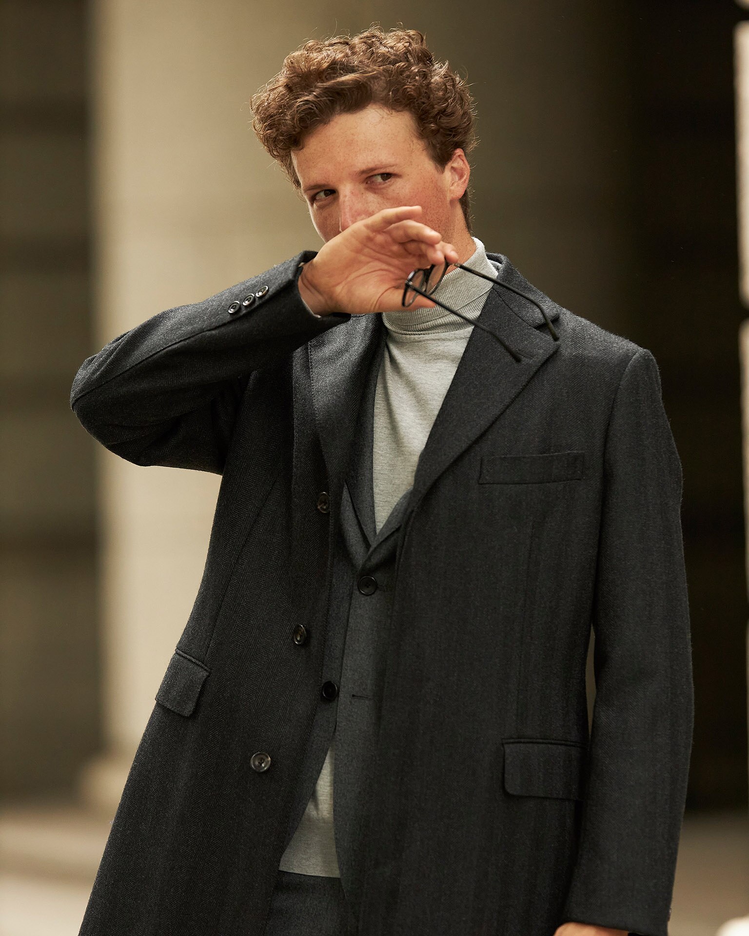 紳士のコートの中で最もエレガントな存在と言えば、チェスターフィールドコートでしょう。そのクラッシックで気品あるムードは他のコートの追随を許しません。今回提案するモデルは、膝まで届くクラッシックな丈で、すっきりとした美しいラインが特徴的です。