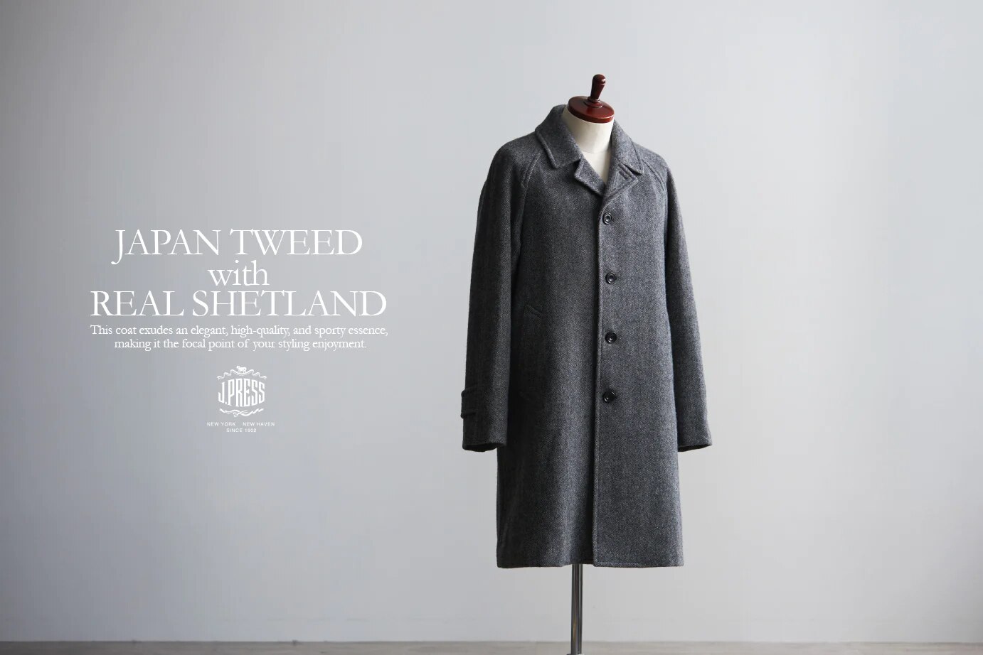 J.PRESSではそのような確たる品質を持った素材を日本の職人技術で丁寧に日本国内で生地に織り上げ、J.PRESSにしかないオリジナル素材を開発しました。ソフトで軽く、膨らみをもった風合いや美しい色味は良い原料と良い技術が組み合わさったからこそ生まれた賜物といえ、一般的なツイードとは一線を画す存在感を持っています。