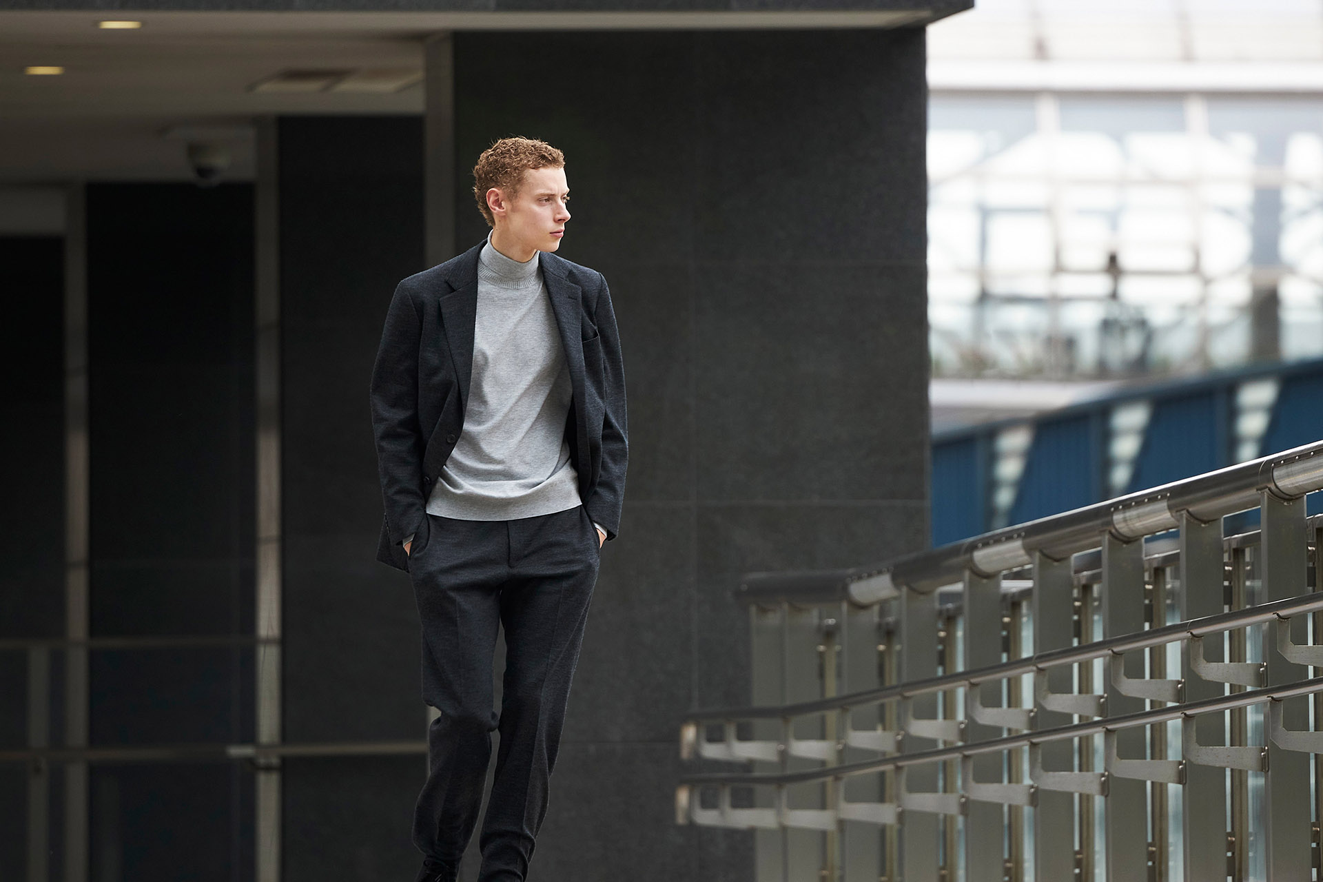 シティウォークコートはショート丈のウォーキングコートで、ビジネスから休日まで、あらゆる日常のシーンで活躍します。セットインラグランスリーブによるストレスフリーな着用感も、このコートの魅力の一つです。