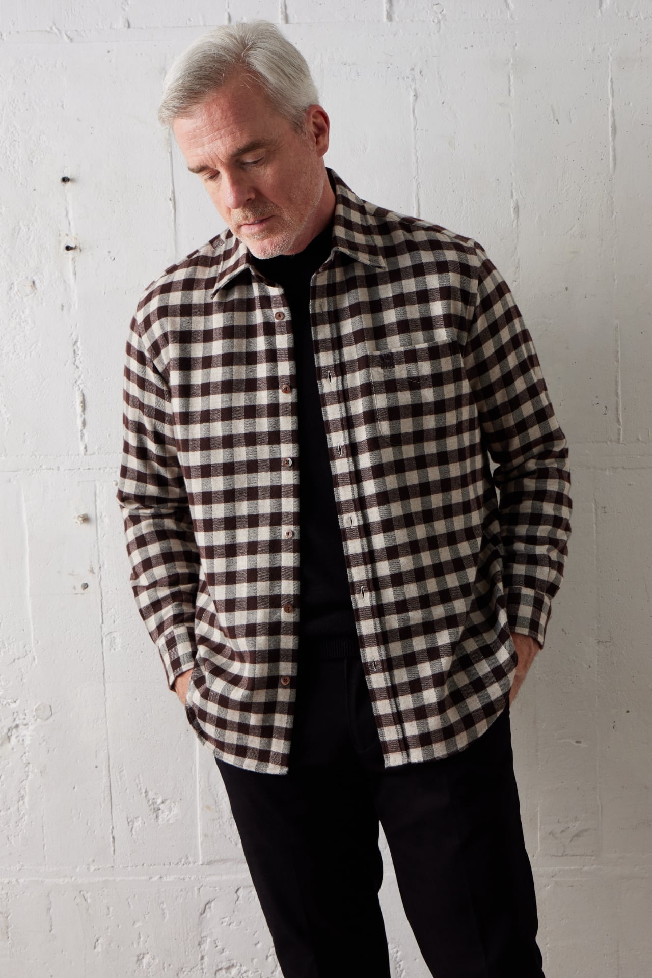 冬の定番アイテムであるフランネルシャツというと、アメカジの無骨でラフな、ともすると子供っぽく見えてしまいがち。