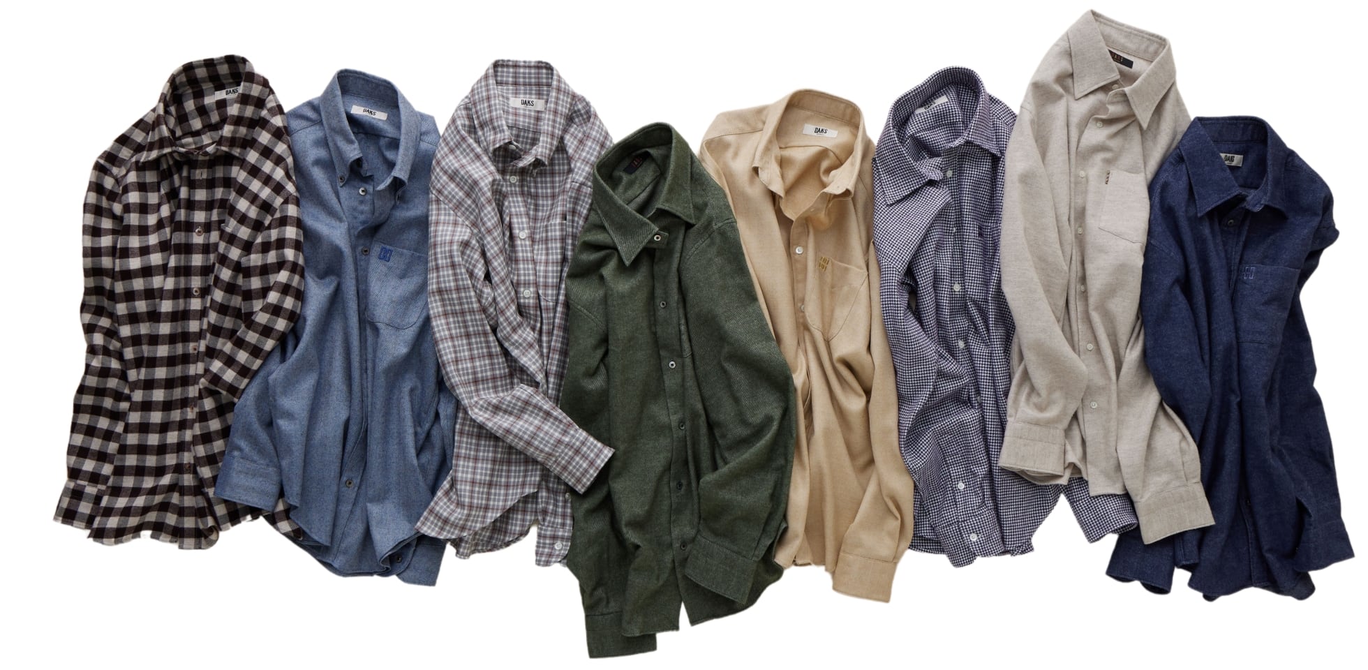 DAKSでは秋冬シャツのヒット商品であり、暖かみと柔らかなタッチが印象的な“ヤクウール混”シャツをはじめとした、大人が着るべき上質で品のある冬シャツが揃う。