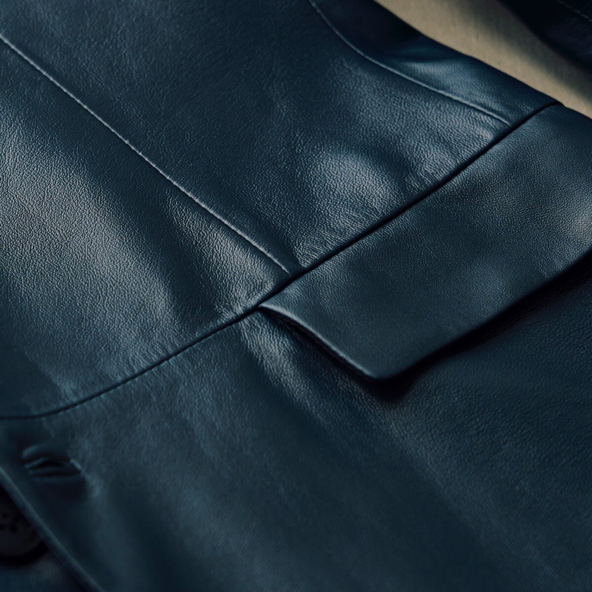 羊からとれるラムは原皮自体が小さいため、ウェアにした際に、革の継ぎ目が目立ちやすくなるデメリットがあるものの、ジョゼフではパターンの工夫と細やかなステッチによってこの問題をクリアしている。