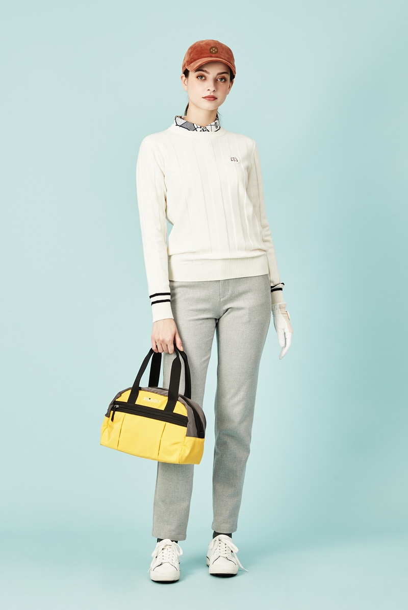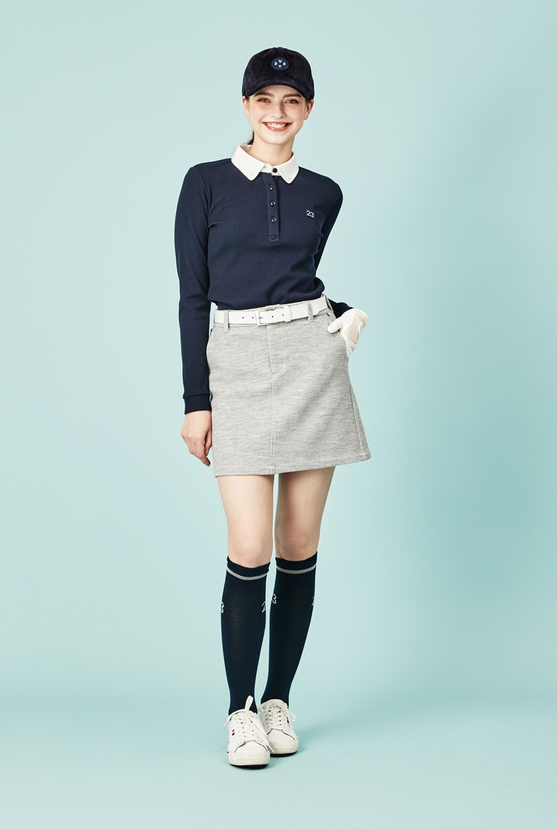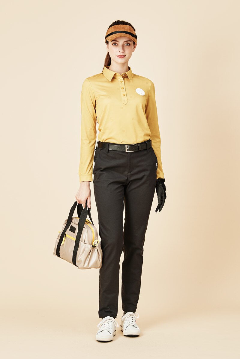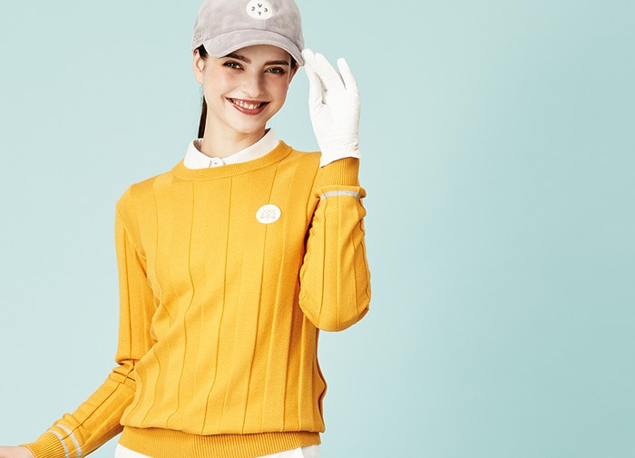 Women印象的なイエローが全身の鮮度を一気にアップ。日常では選ばないカラーやアイテムも、フェアウェイなら不思議とハマるのがゴルフの魔法。露出が適度に抑えられるこの時期のスカートスタイル、おすすめです。