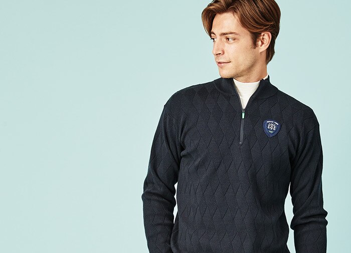 Men男女共に好感度大のスタイルといえば…の大定番。毎年売り切れ続出の男映えイージーケアニットスタイルなら、若々しくスマートにキマります。