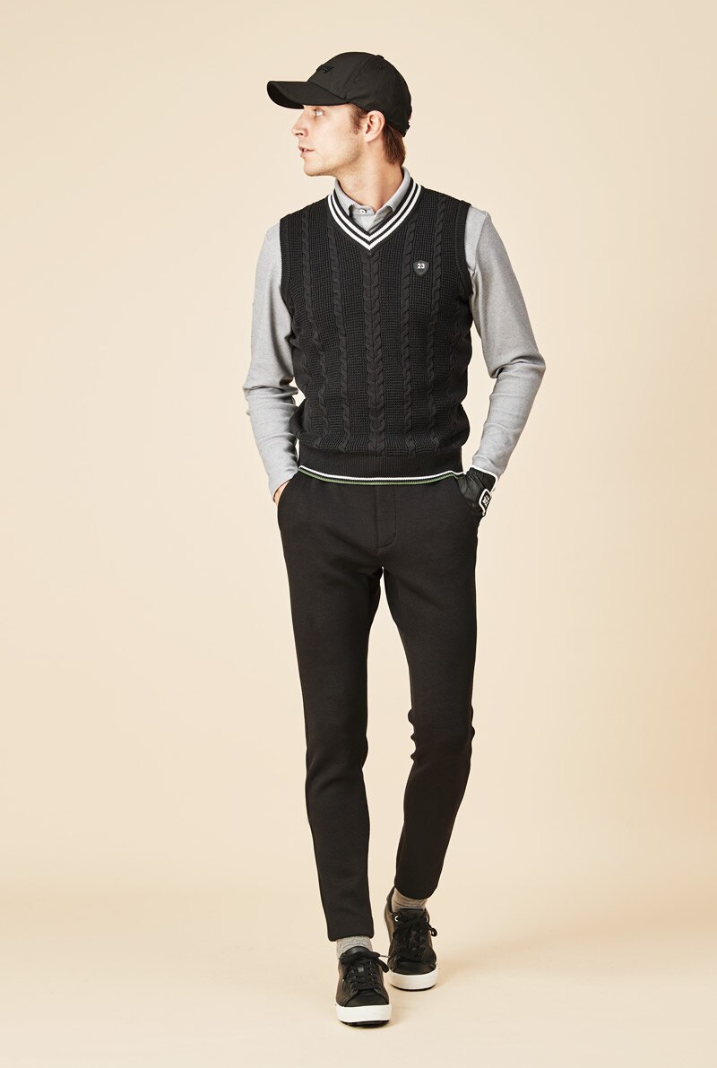 Menどうせ買うなら普段も着られて長く愛用できるアイテムがいい。そんな男性にはベストやスウェットスタイルがおすすめ。トップにボリュームが出る分、ボトムはすっきりが〇。