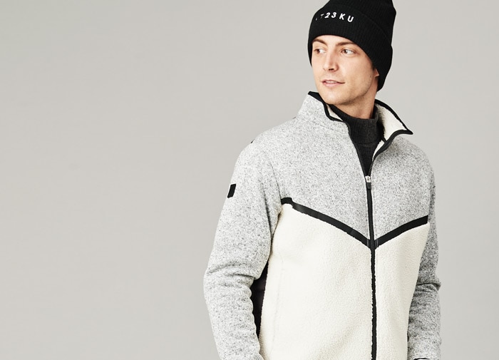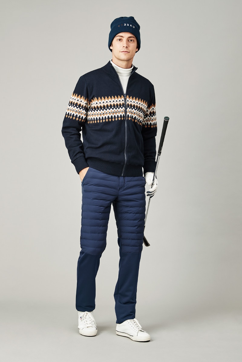 Menアウタースタイルは全身ブラックでも地味に見せないよう"フェアアイル柄"を投入。リバーシブルで着られるブルゾンで、楽しい気分も、コーデの幅もぐんと上昇、間違いなし!