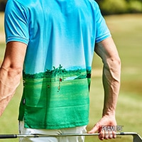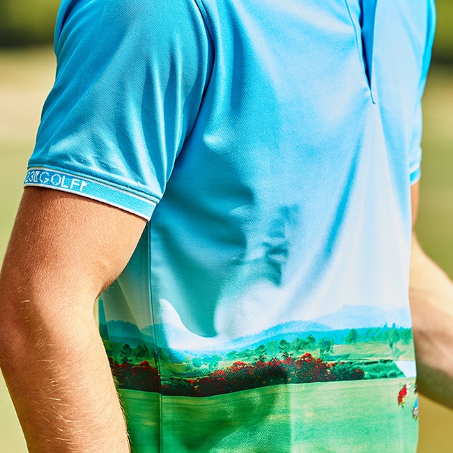 真夏のリゾートゴルフ感満載なポロシャツです。