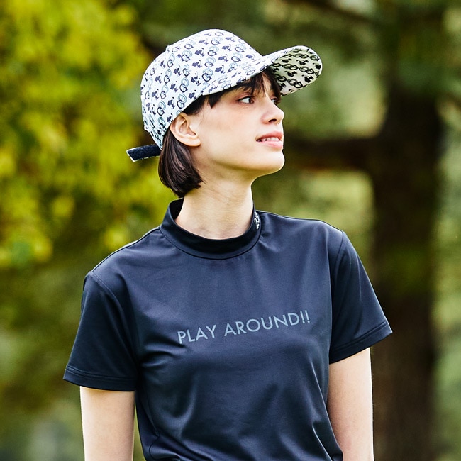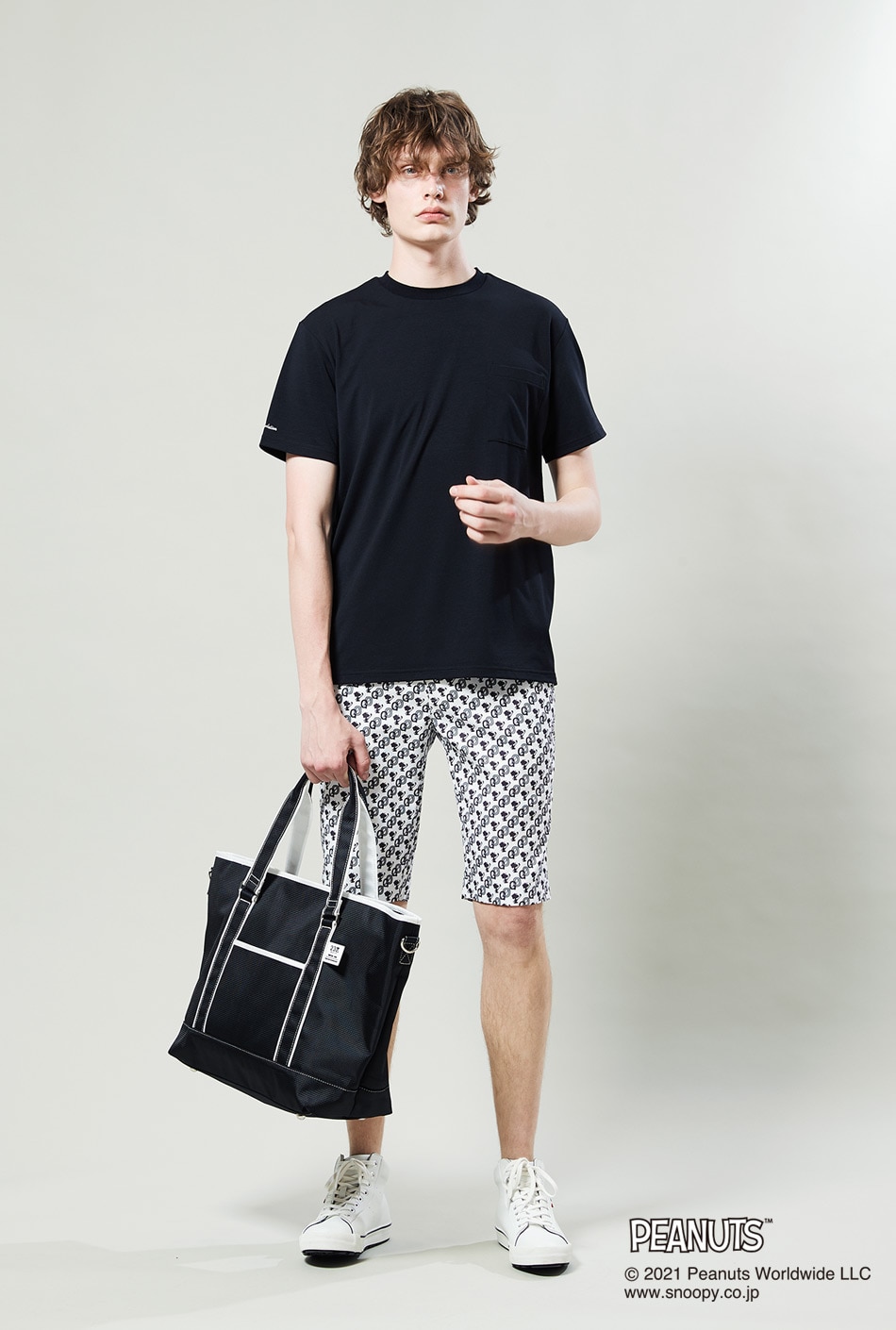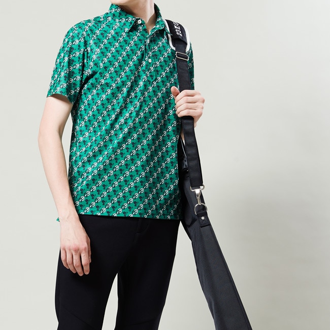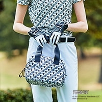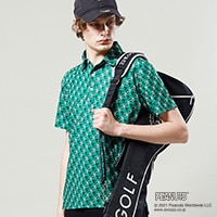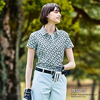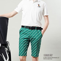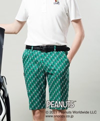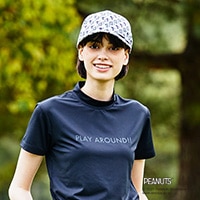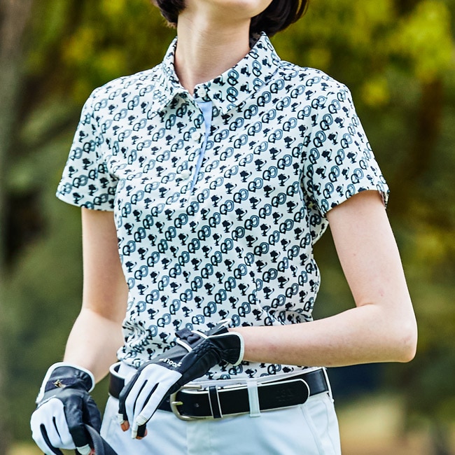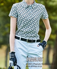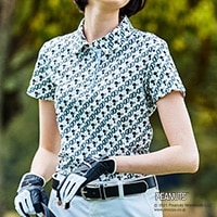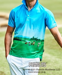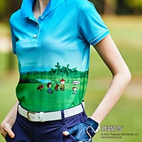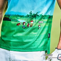サラリとした着心地でストレッチ性抜群の鹿の子素材に、ゴルフを楽しむスヌーピーたちを、フォトプリント調に表現。まるで、スヌーピーたちとラウンドしているような、そんな楽しい気分になれるアイテムです。同デザインのカートバッグも。