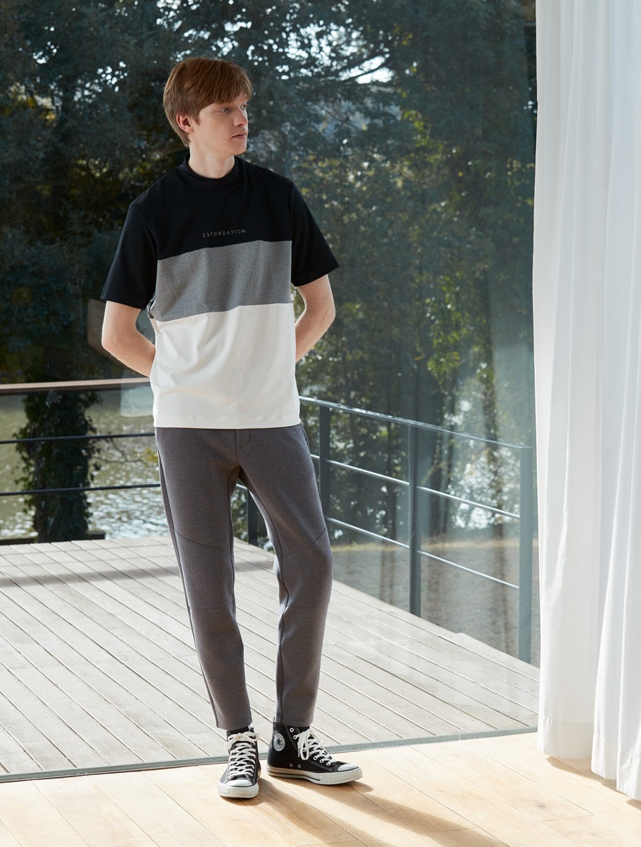 ドライタッチな肌触りの吸水速乾素材と2WAYストレッチで着用時もストレスフリー。