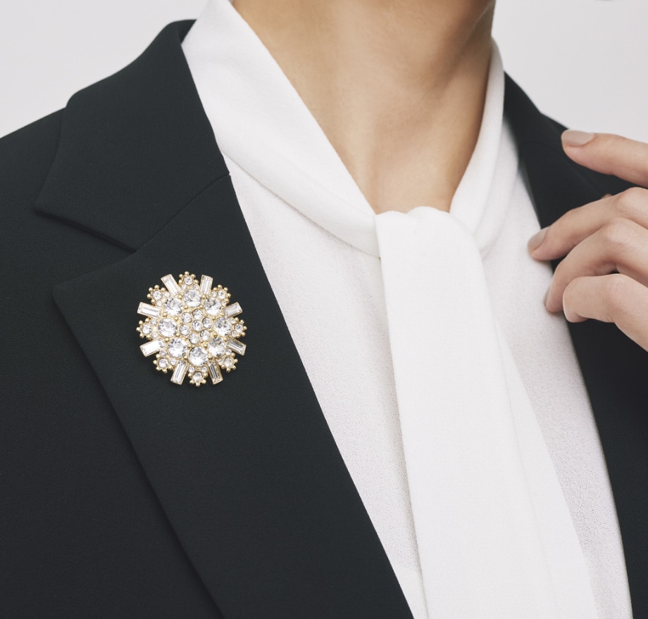 胸元にリッチな煌めきを添える、上質なクリスタル