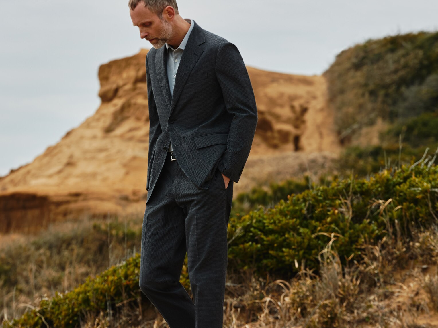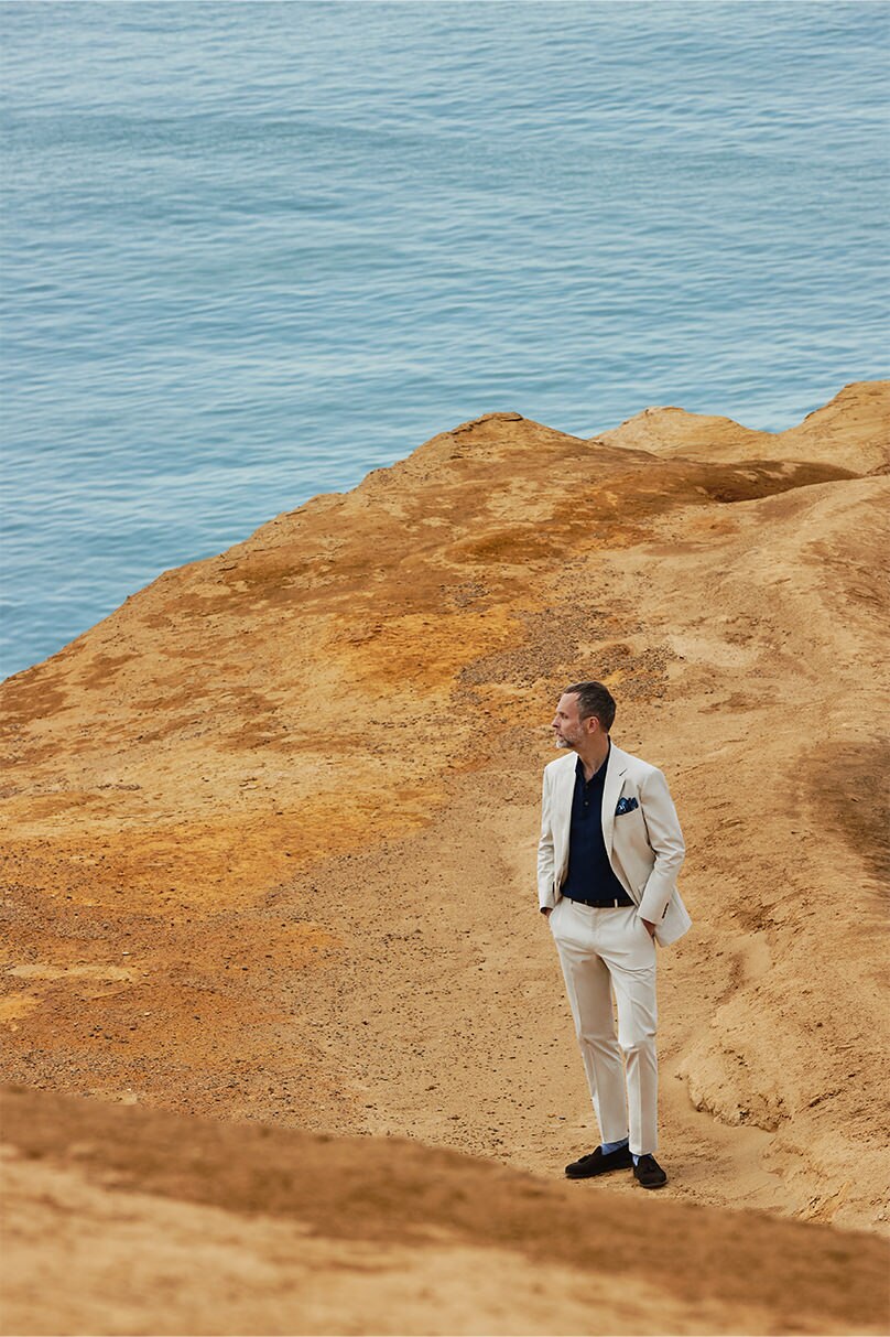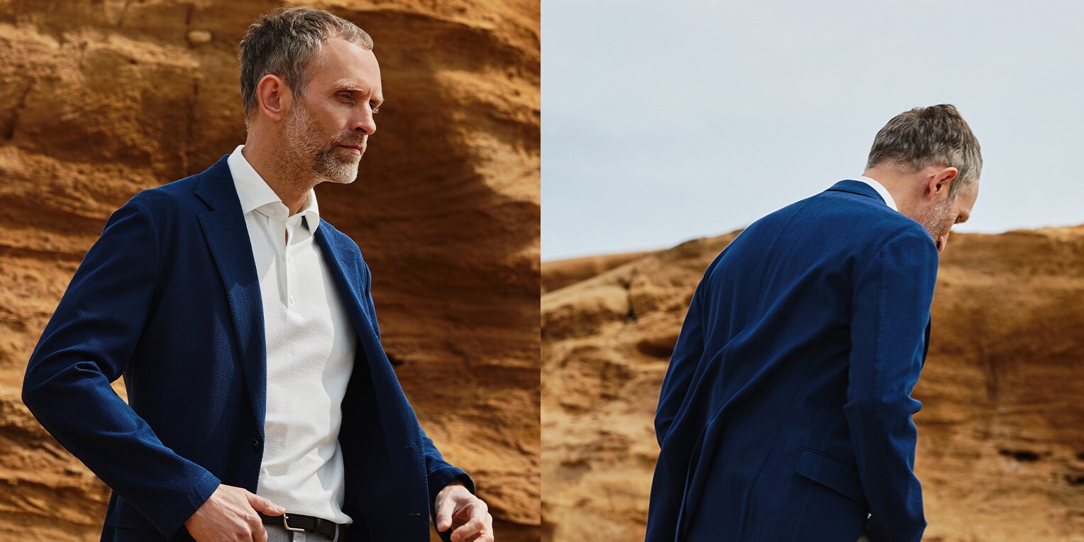 通気性やストレッチ性に優れたブレザーに、ウール100%で自宅洗いも可能な防シワ加工の優秀パンツ。見た目の美しさだけでなく、機能性も申し分なし。