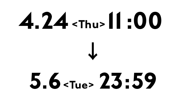 4/24(木):11:00〜20:00(19:00最終入場)