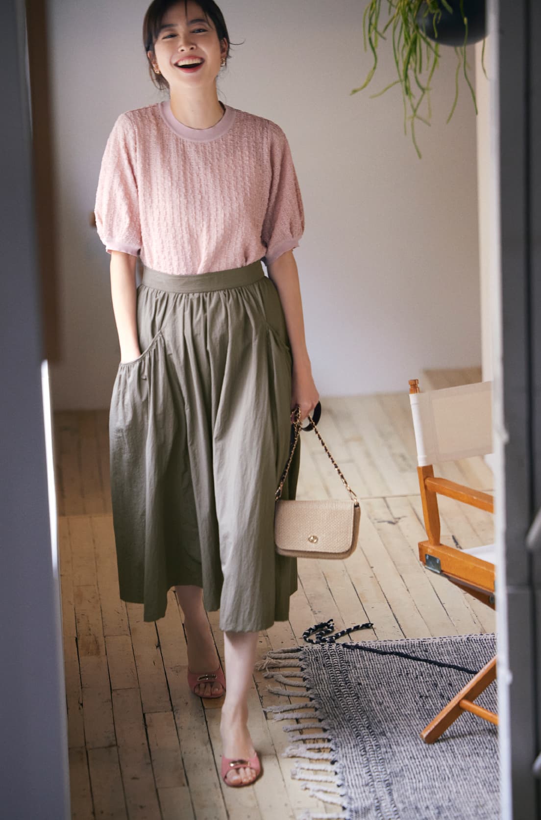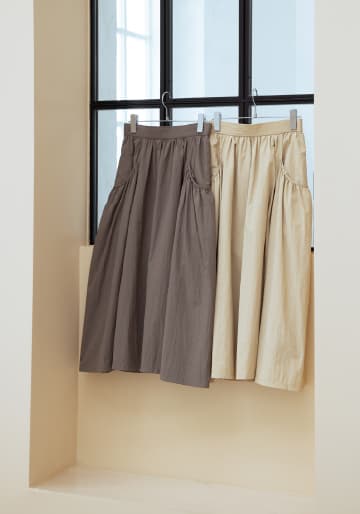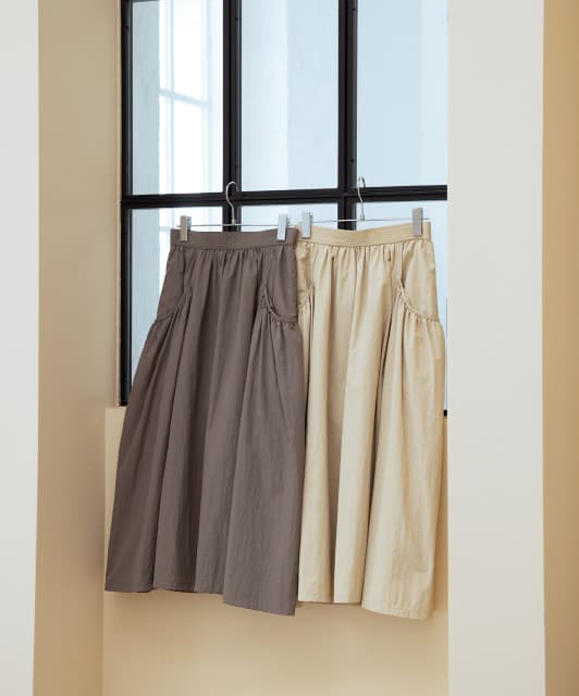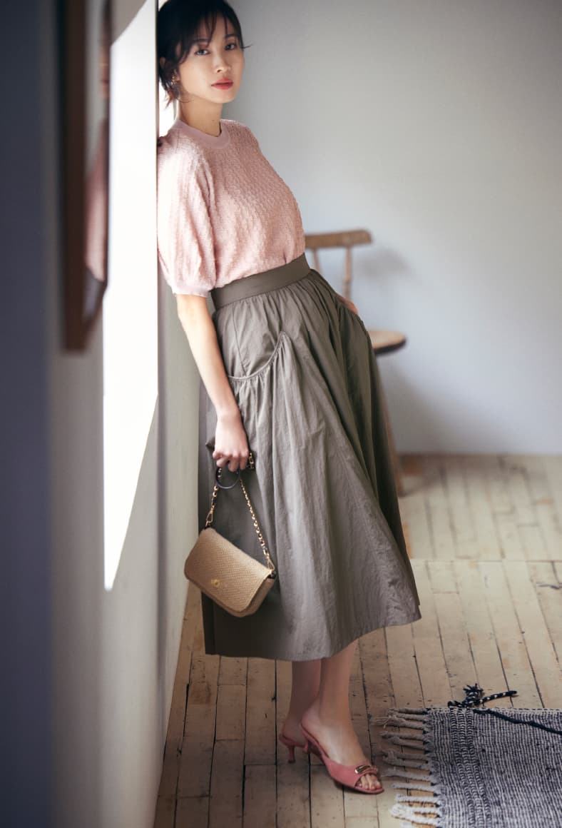 ポケットのギャザー使いが甘さを演出