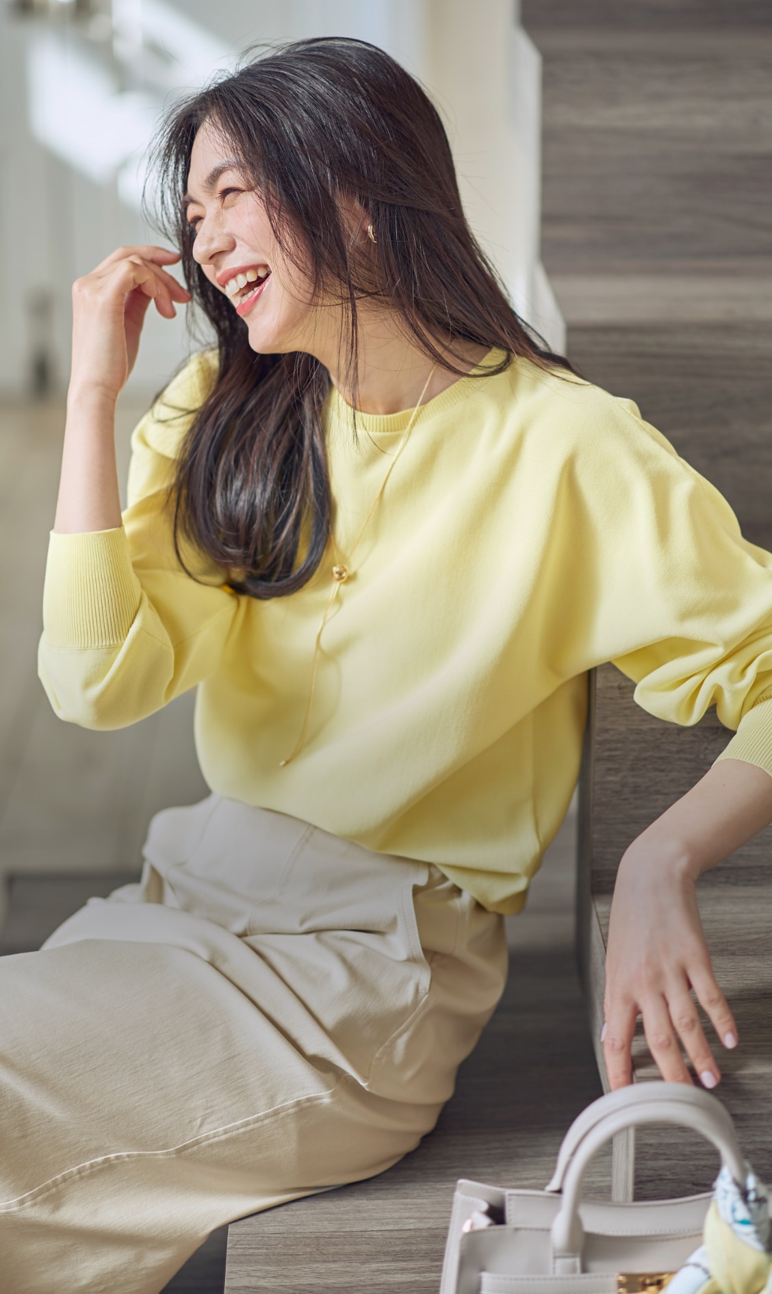 ゆったりとしたドルマンスリーブと腰回りをカバーする丈感が、カジュアルにもキレイめにもフィット。さらりと着るだけで様になるからコーデ迷子の日にも頼りになります。華やかなカラーを選べば何だか気持ちも晴れやかに。