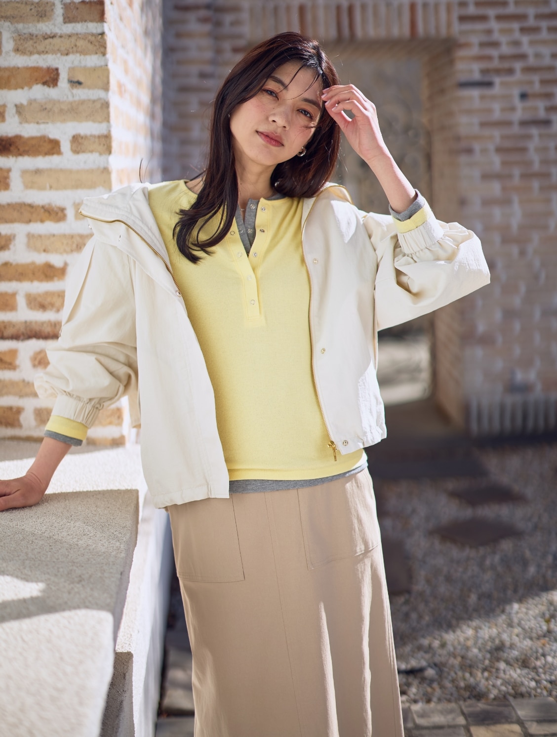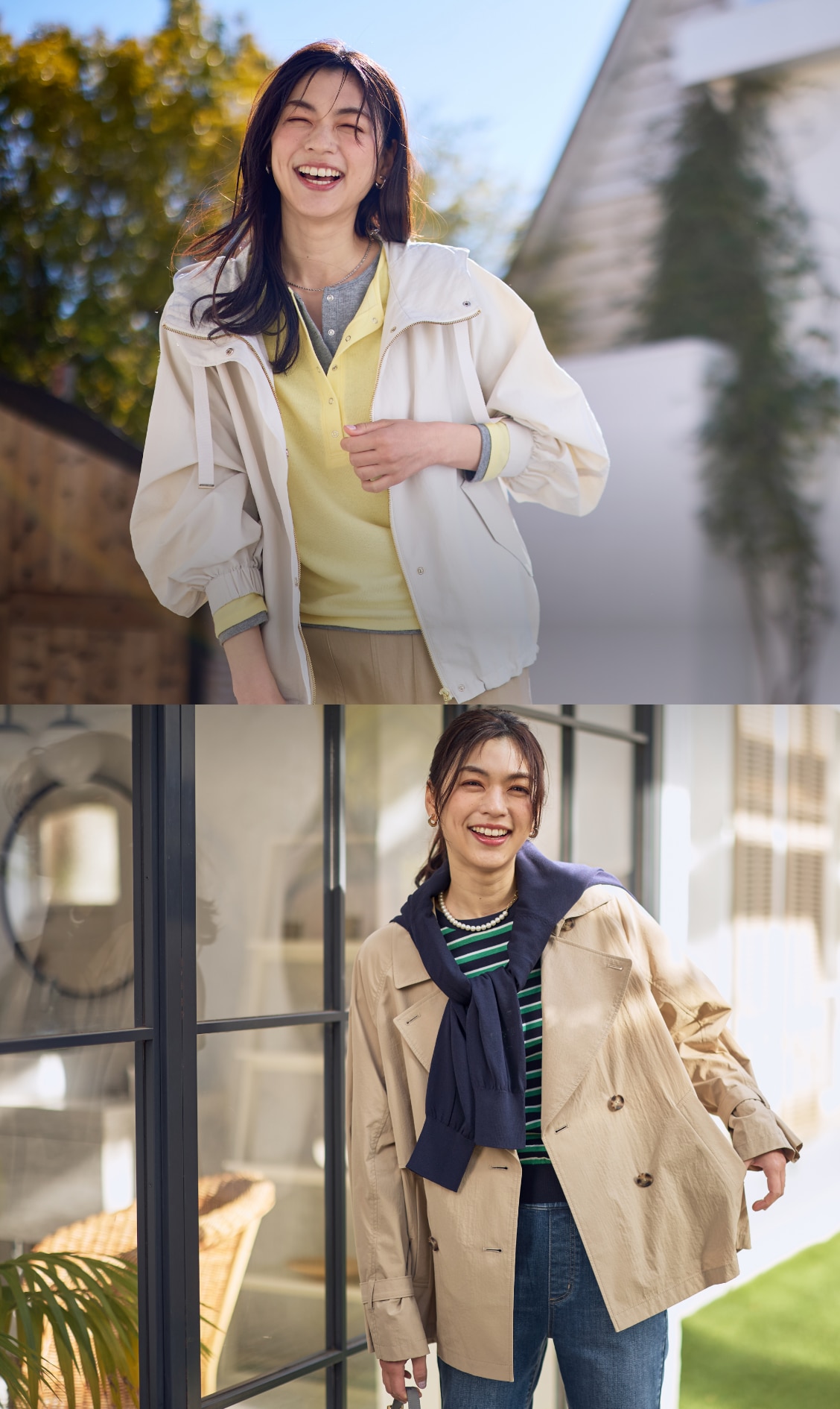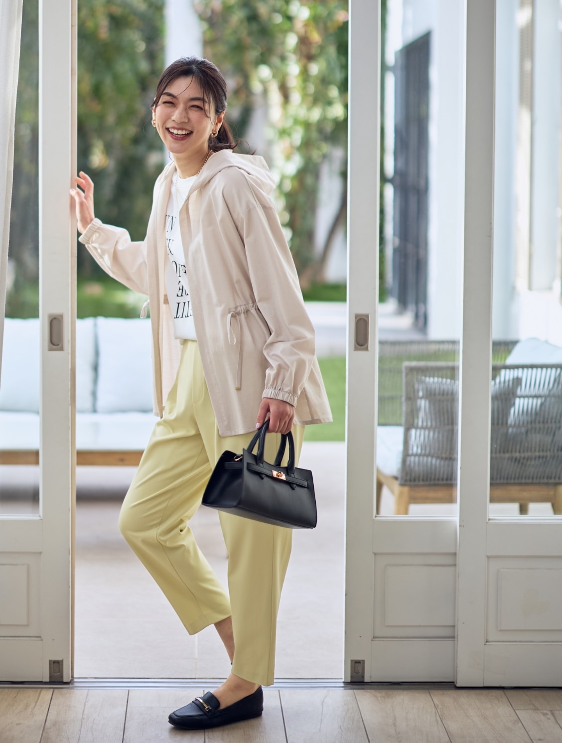 トレンチならではのきちんと感は残しつつ、軽い素材感とややゆとりのあるシルエットでデイリーから通勤、ちょっとしたシーンまで出番多め。シワが目立ちにくく、自宅で洗濯可能なので毎日でも着られる頼もしさ!
