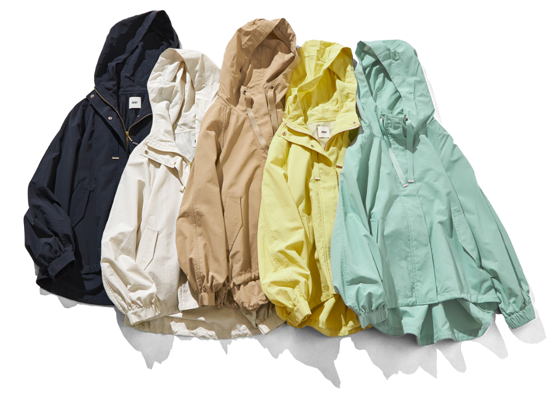 立体的な袖口のシルエットが今っぽくフォルム映え。撥水・UVケアを備え、さっと羽織れる軽いナイロン素材が外出先でも大活躍。襟ぐりのテープで折り畳めばコンパクトに収納ができ、持ち運びにも便利なポケッタブル仕様になっています。
