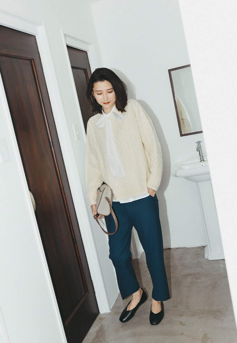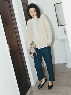 キレイ見えするオフホワイトパンツが主役。ほど