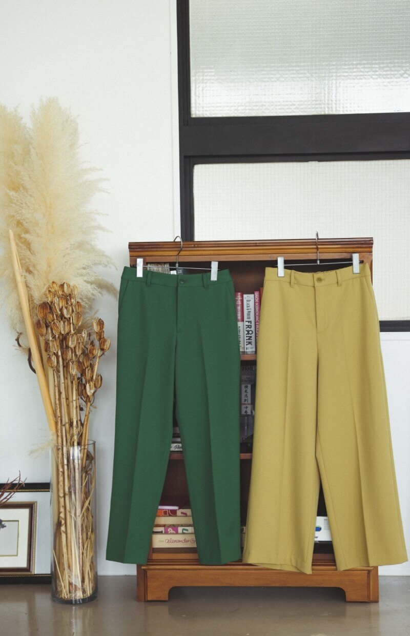 デザインはテーパードとワイドストレートの2種類。それぞれ無地6色、