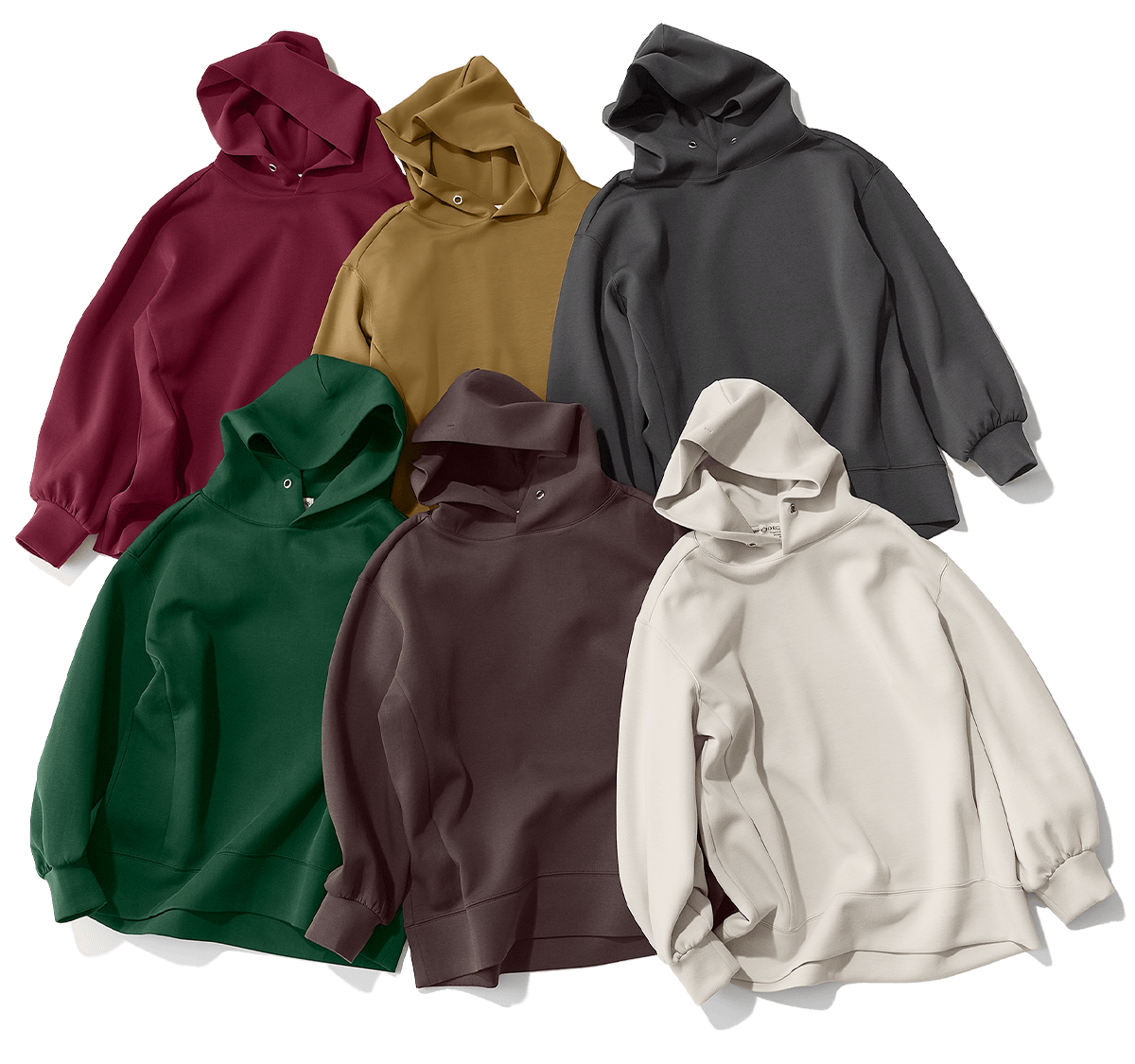 こっくりとした秋色やフェミニンなワンポイントが着映えるデザインでお届け。