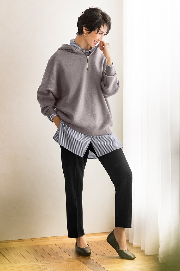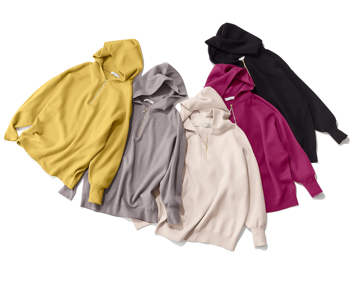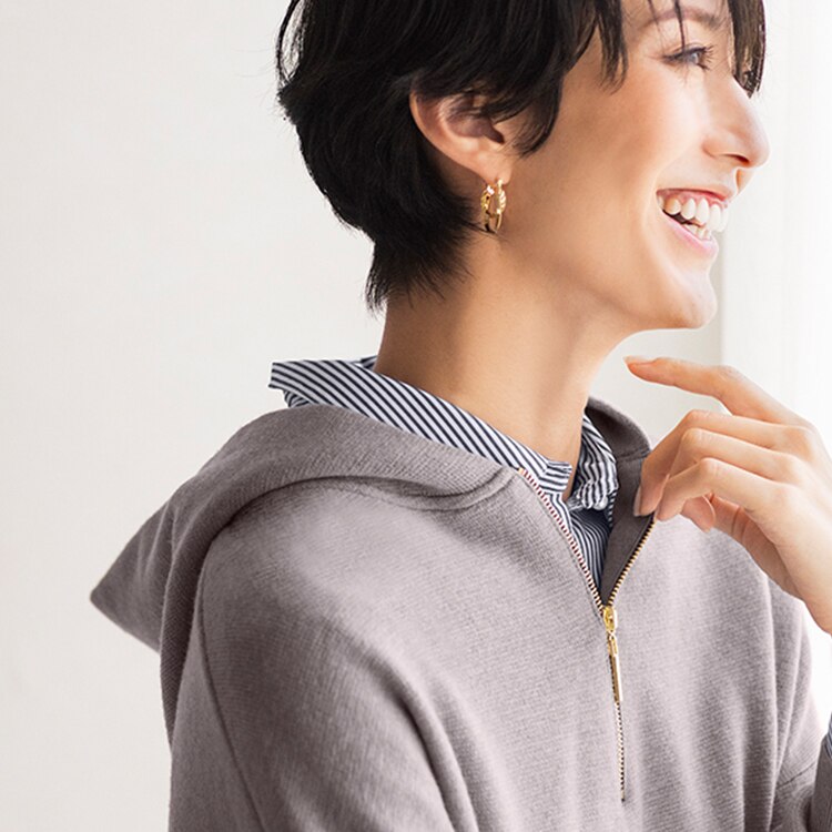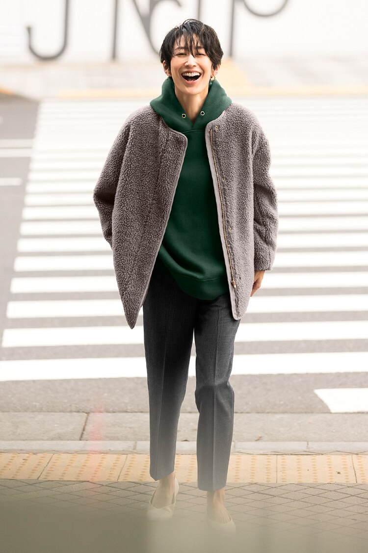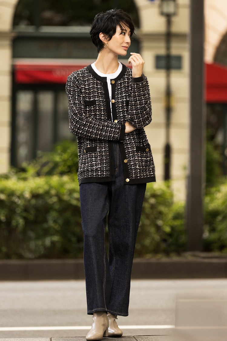 目を惹く大ぶりの柄や温かな素材感で、着慣れたアイテムもぐんとレディな表情に。