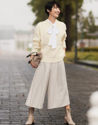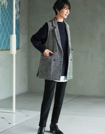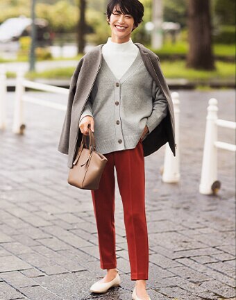使い勝手のいい着慣れたアイテムを冬仕様にアレンジ。こっくりとした旬の色合いや
