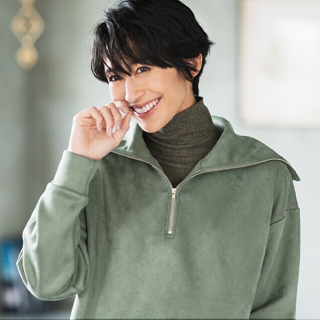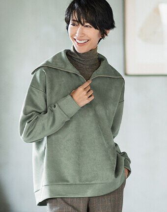 ウール&スエードの柔らかな風合いが、ほのかなレディさを感じさせる秘密。