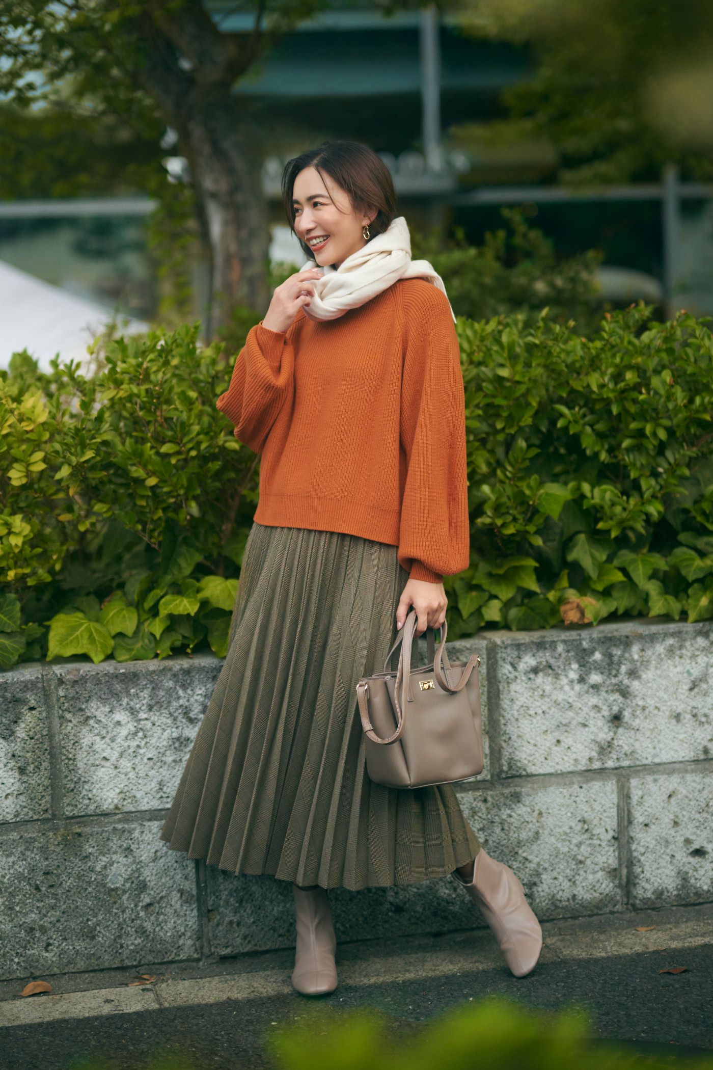 しあわせオーラが溢れる優木まおみさんの着こなしでお届けします。